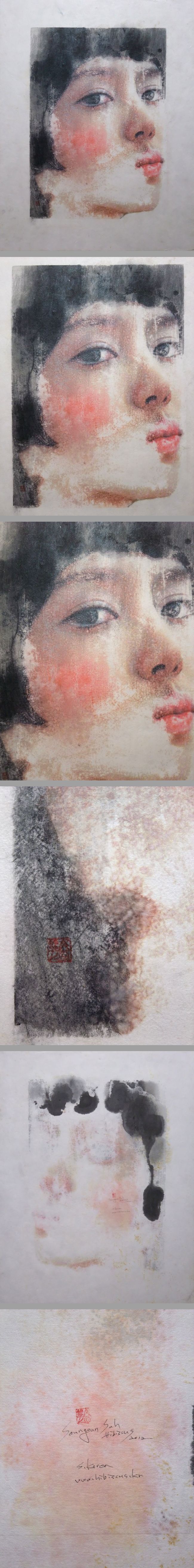 | 説明 | 少しすねたような仕草と、潤んだ大きな瞳がたまらなく愛らしい、感情豊かな一点ものの原画です。 恋をしている瞬間の、切なさや甘えが混じり合った絶妙な表情を見事に描き出しています。 特にその大きな瞳は、観る者の心に語りかけてくるような深い引力を持っています。 厚手の韓紙を舞台に、中国のインクと東洋の水彩絵具を幾重にも重ねることで、西洋的な構図の中に深く豊かな色彩の調和を生み出しています。 画面には画家の息遣いを感じさせる筆致と、伝統的な「押印」および「直筆サイン」が施されており、真作としての確かな品格を放っています。 約30cm×42cmの絵画サイズは、お部屋の主役として十分な存在感があり、空間を一瞬で優しく叙情的な雰囲気へと変えてくれます。 |