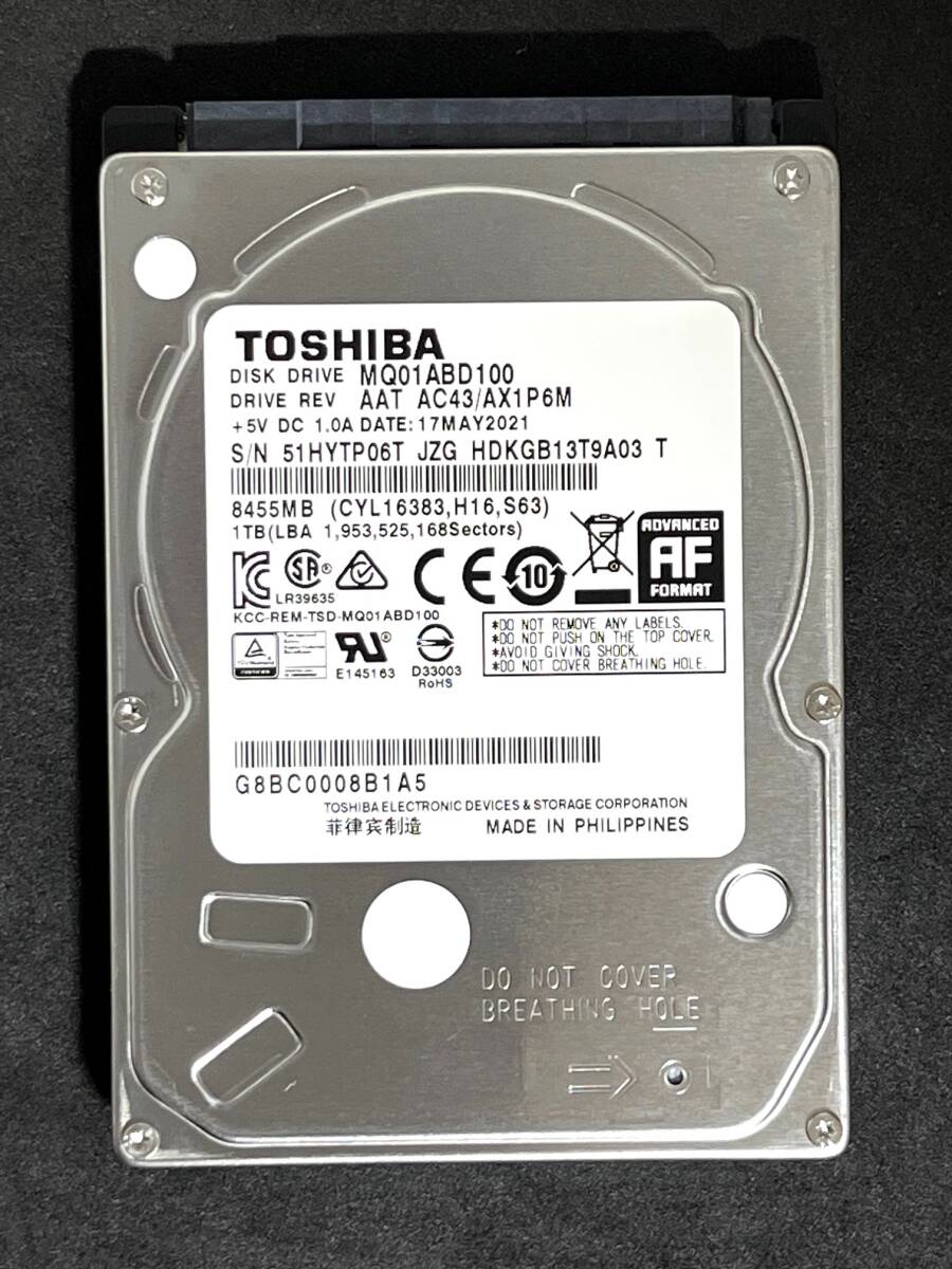 ★ 1TB ★ MQ01ABD100 / TOSHIBA 稼働少 【使用時間:3583h】2021年製 正常品 2.5インチ 内蔵 HDD 9.5mm SATA 1000GB [管理■5AP0]