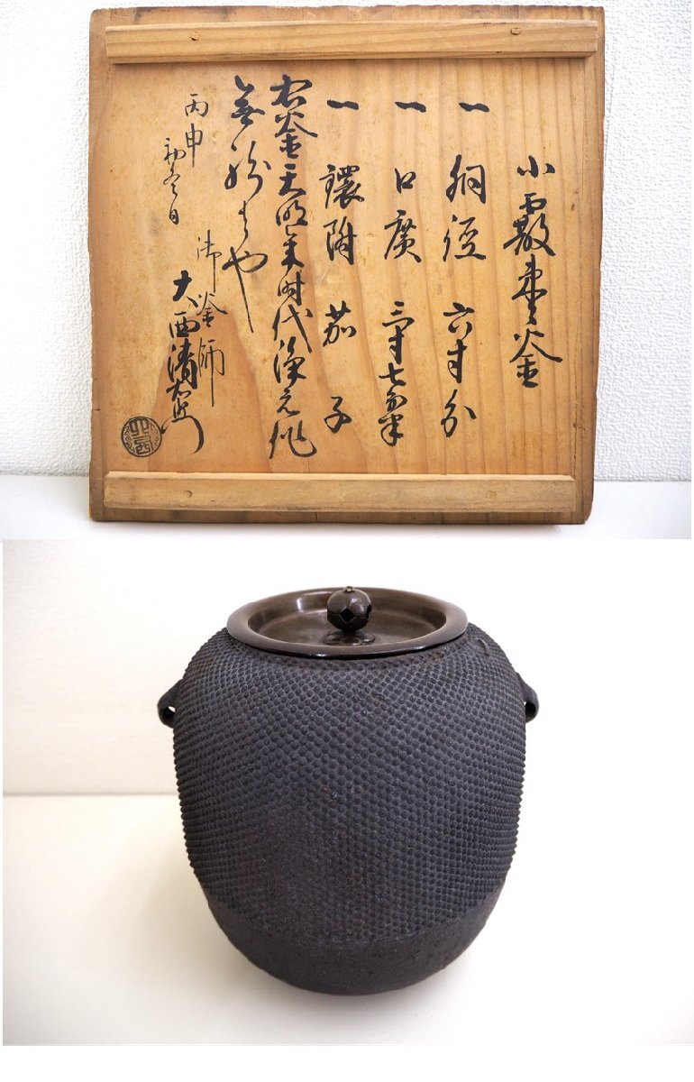 | ★☆ 茶道具 釜師 大西 浄元 六代 大西清右衛門 大西家 小霰棗釜 茄子鐶付 コレクション 伝統工芸品 【 重量 約 2666g 】 煎茶道具 湯沸 ☆★ | |||||||||||||||||||||||||||||