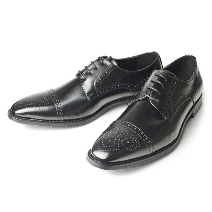 新品■25cm 機能性 ビジネスシューズ 幅広 メダリオン 外羽根 ストレートチップ 紳士靴 冠婚葬祭 オフィス フォーマル ロングノーズ 革靴