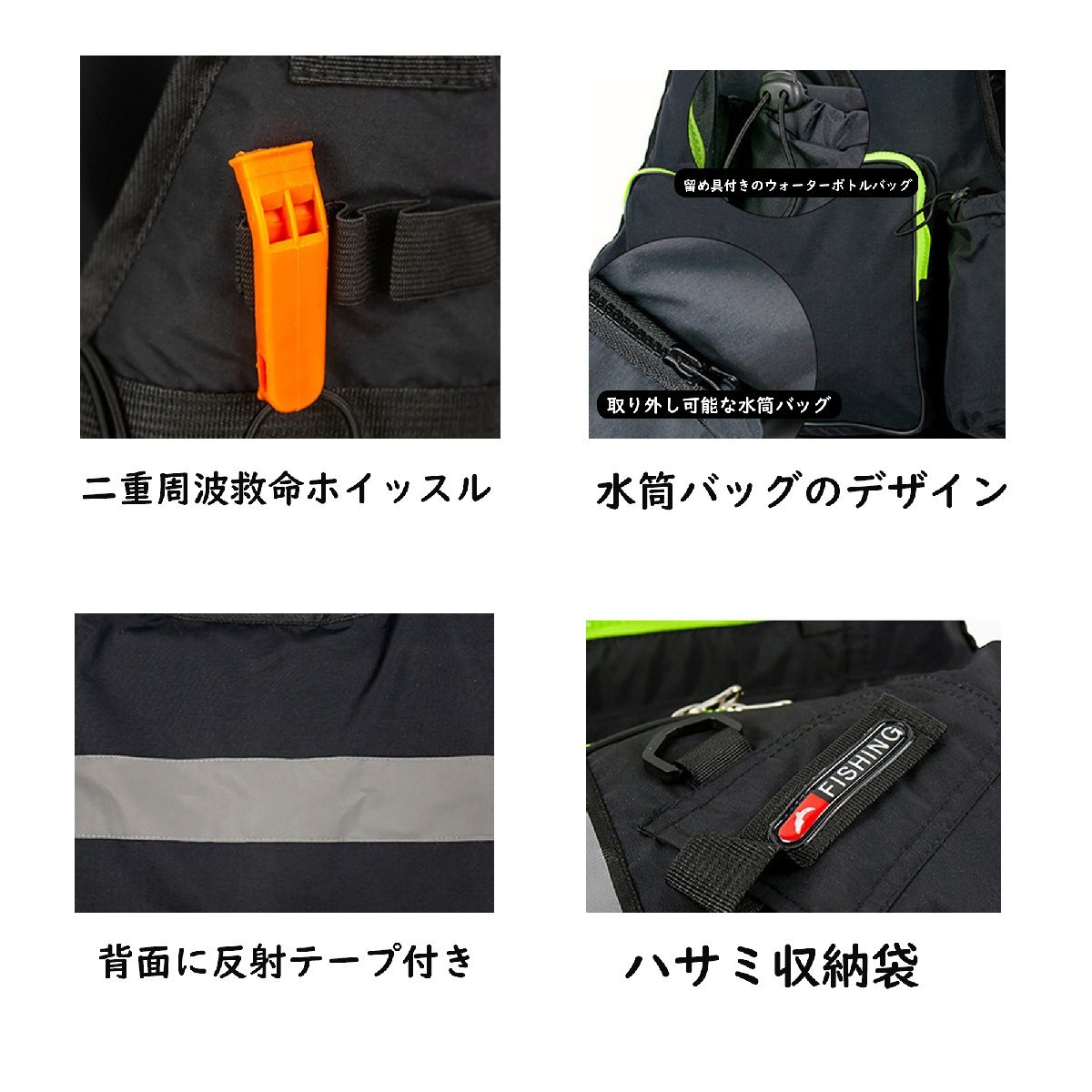 ■釣り、磯釣り、ラフティング、サーフィン、水泳などのウォータースポーツに適した浮力ベスト。