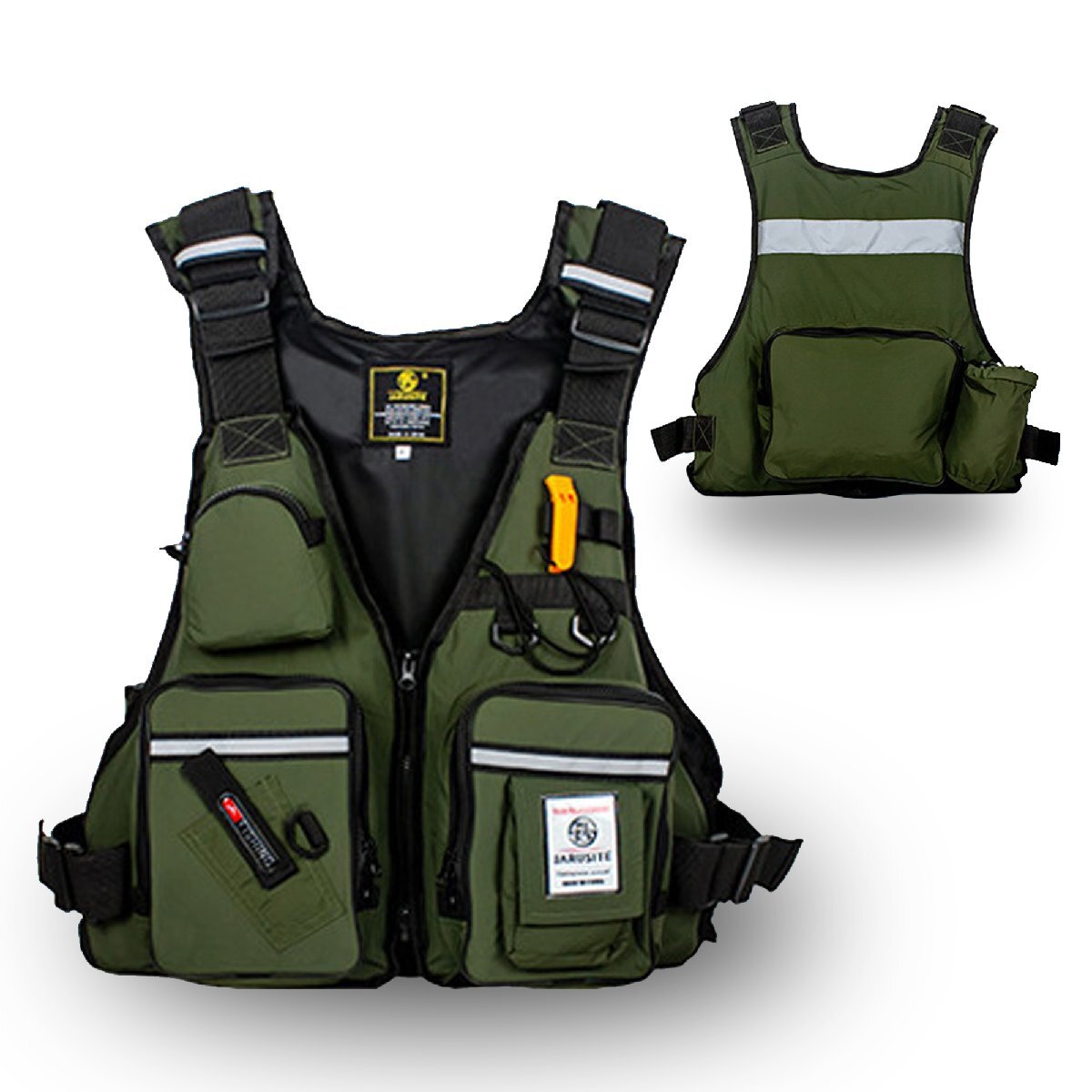 ◇新品未使用 フィッシングベスト ライフジャケット 釣り用 衝撃吸収 高い浮力材 フロートベスト アウトドア アーミーグリ