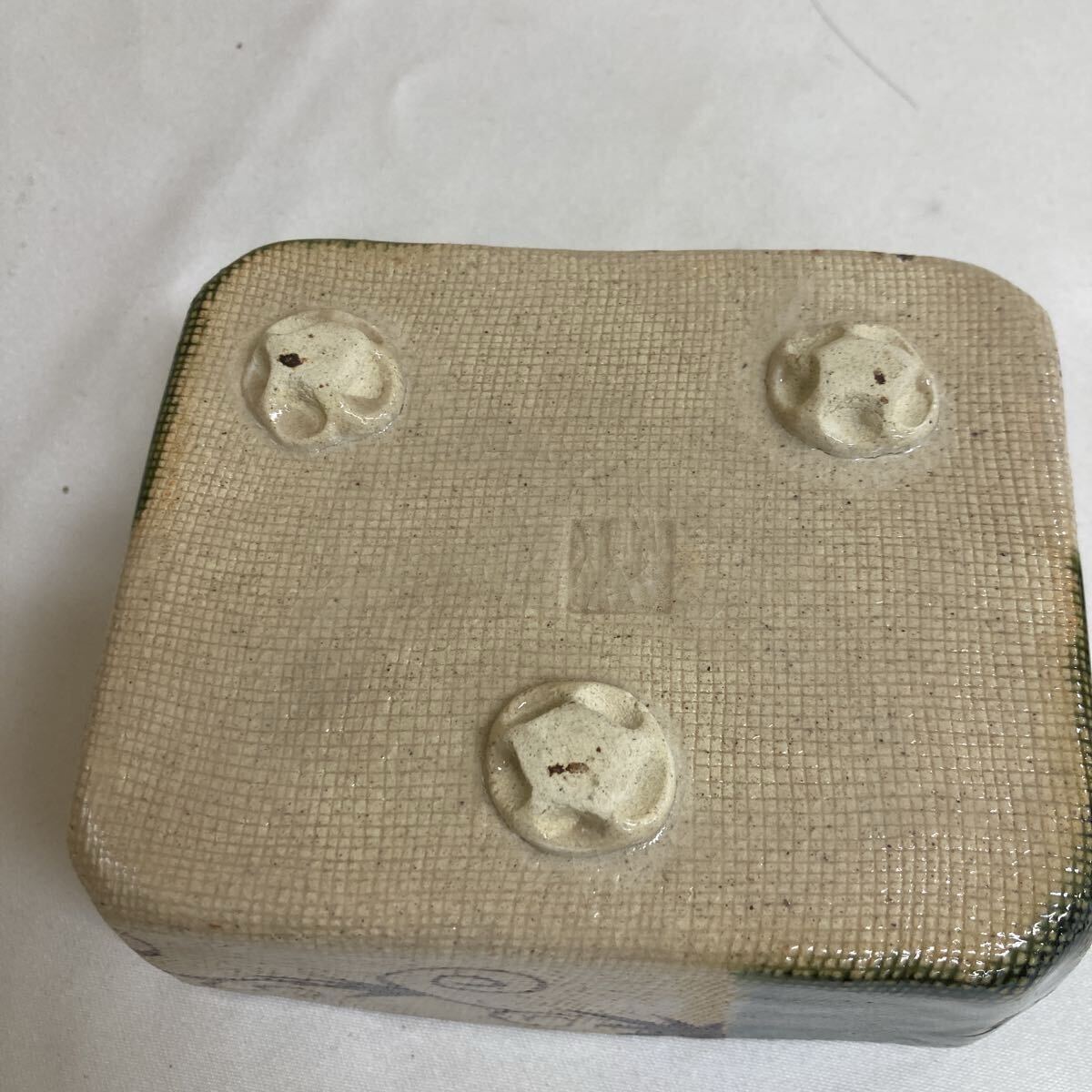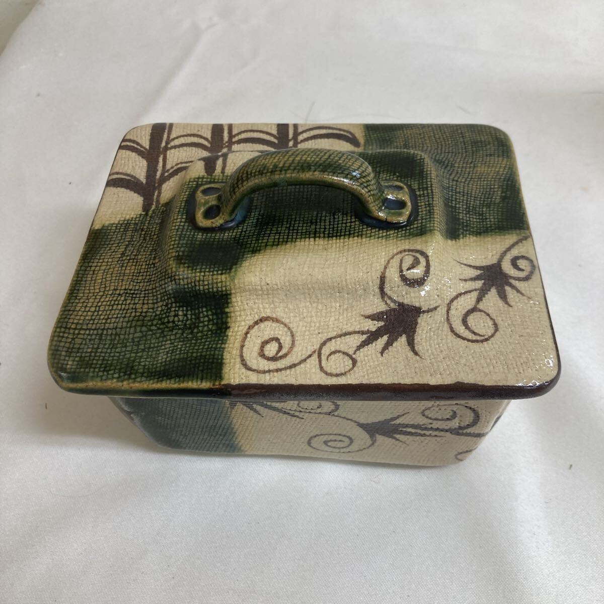 【織部焼 菓子鉢】蓋付き 菓子器 陶器 蓋物 レトロ【C8-4-3】1007