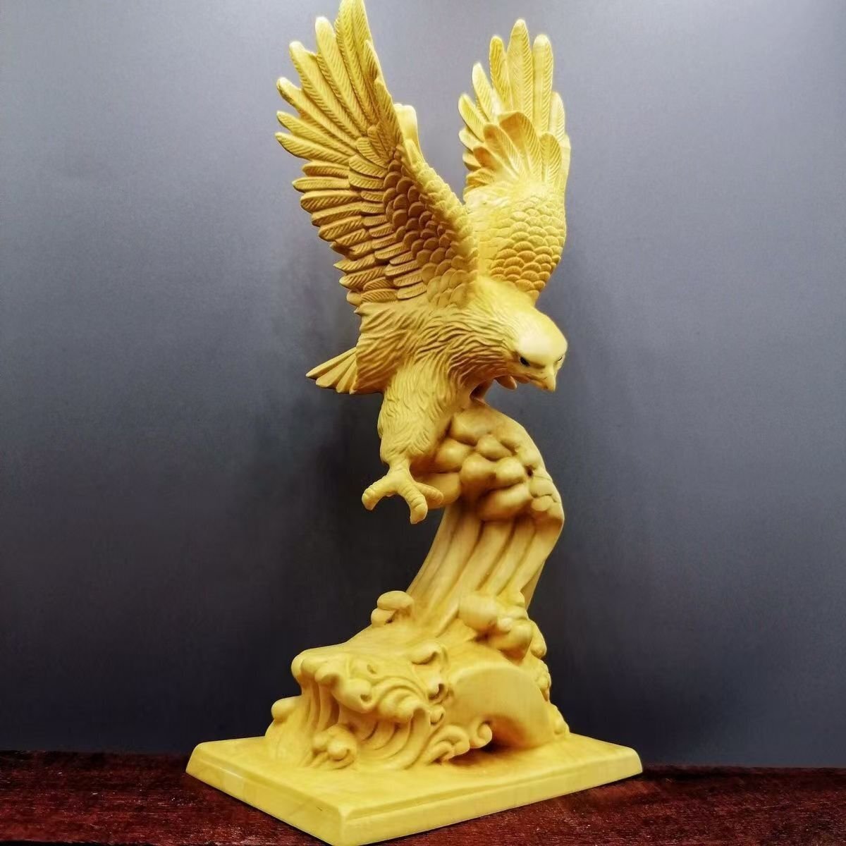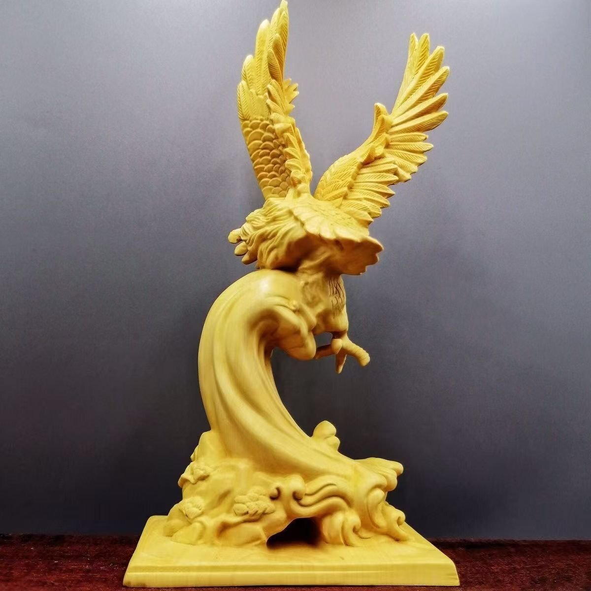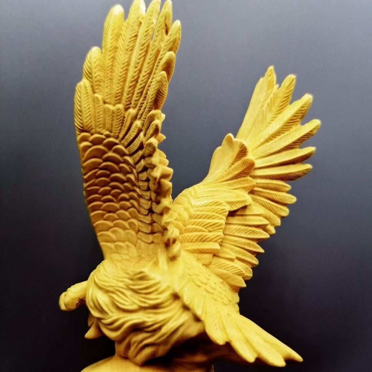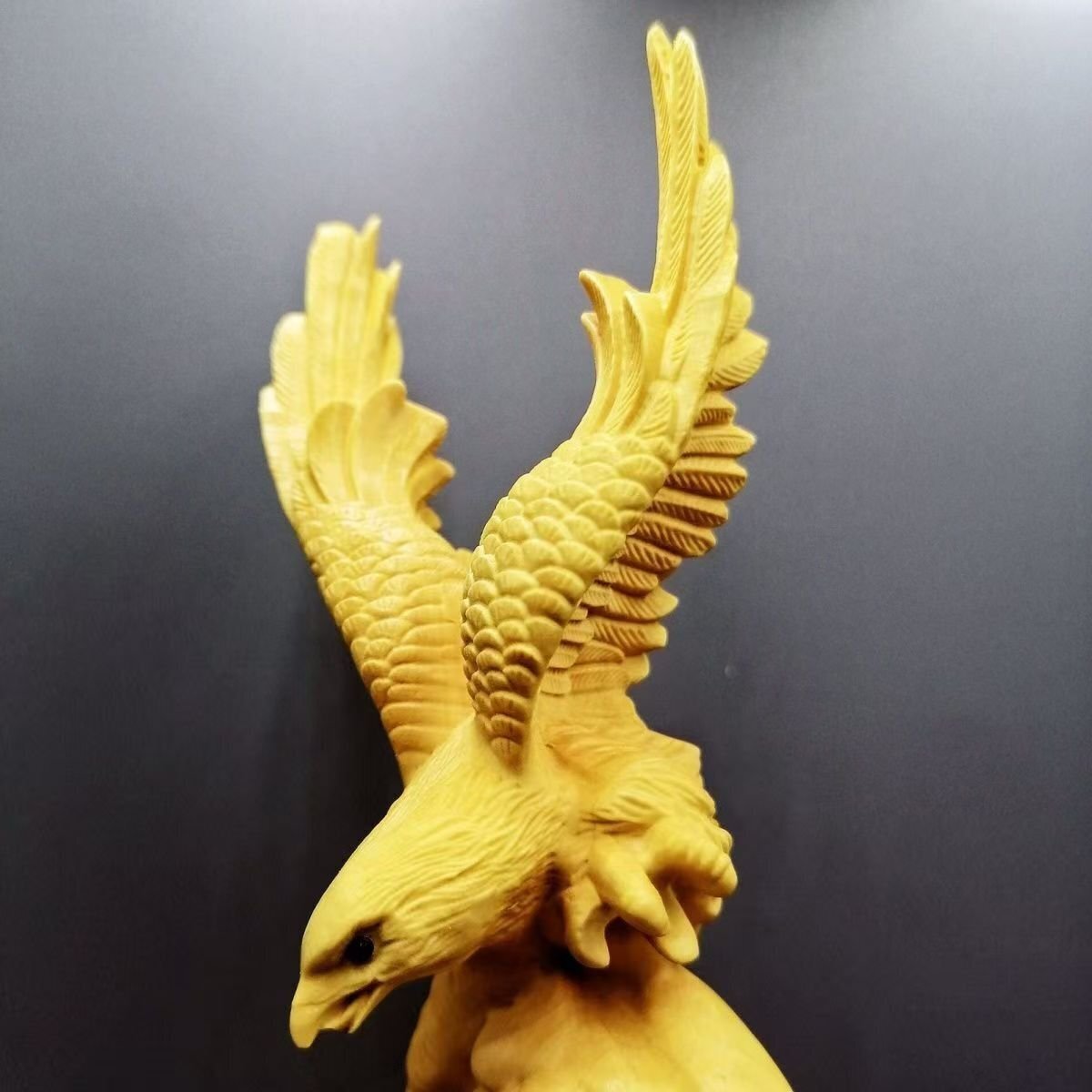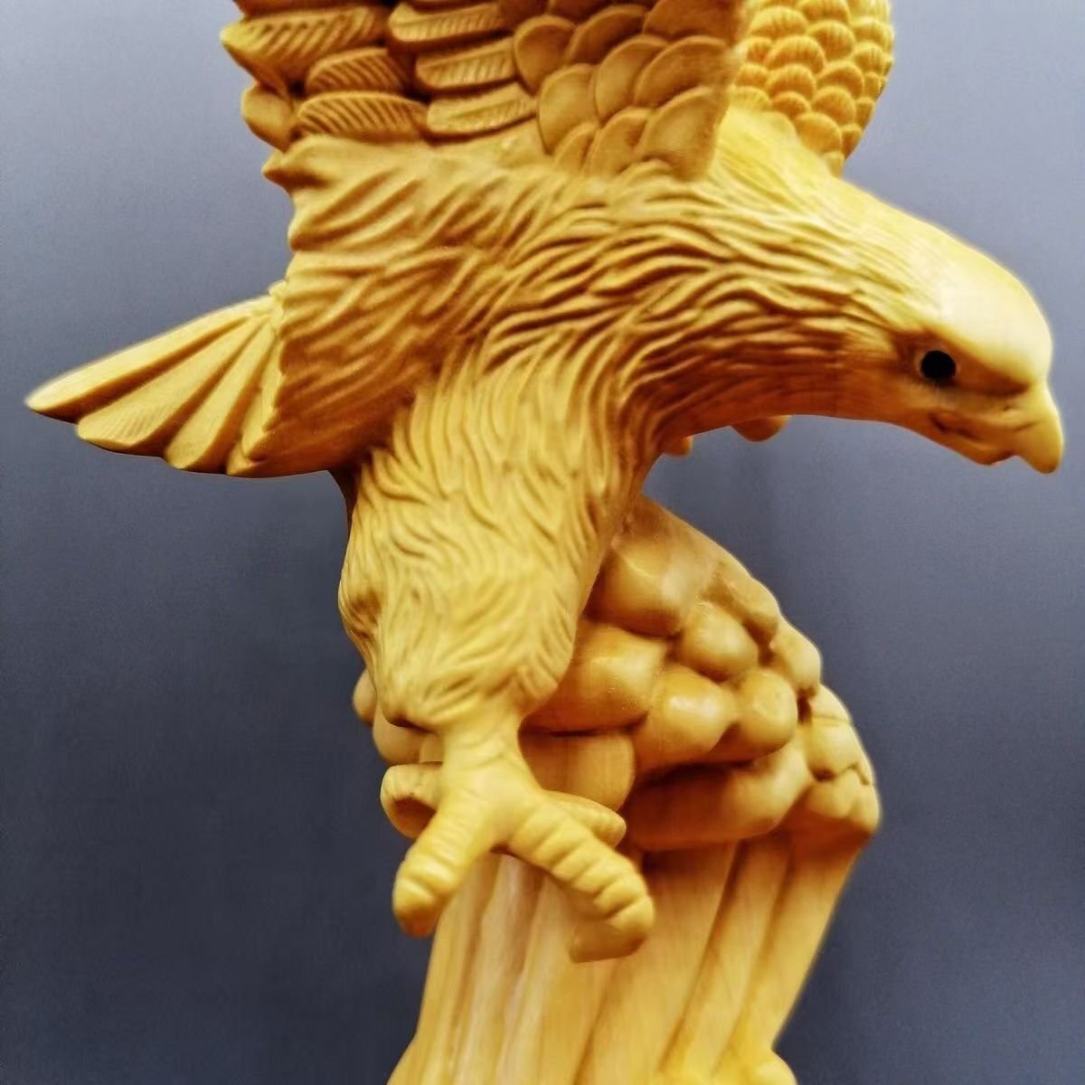 黄楊木 手彫り 木彫 鷹 木製 置物