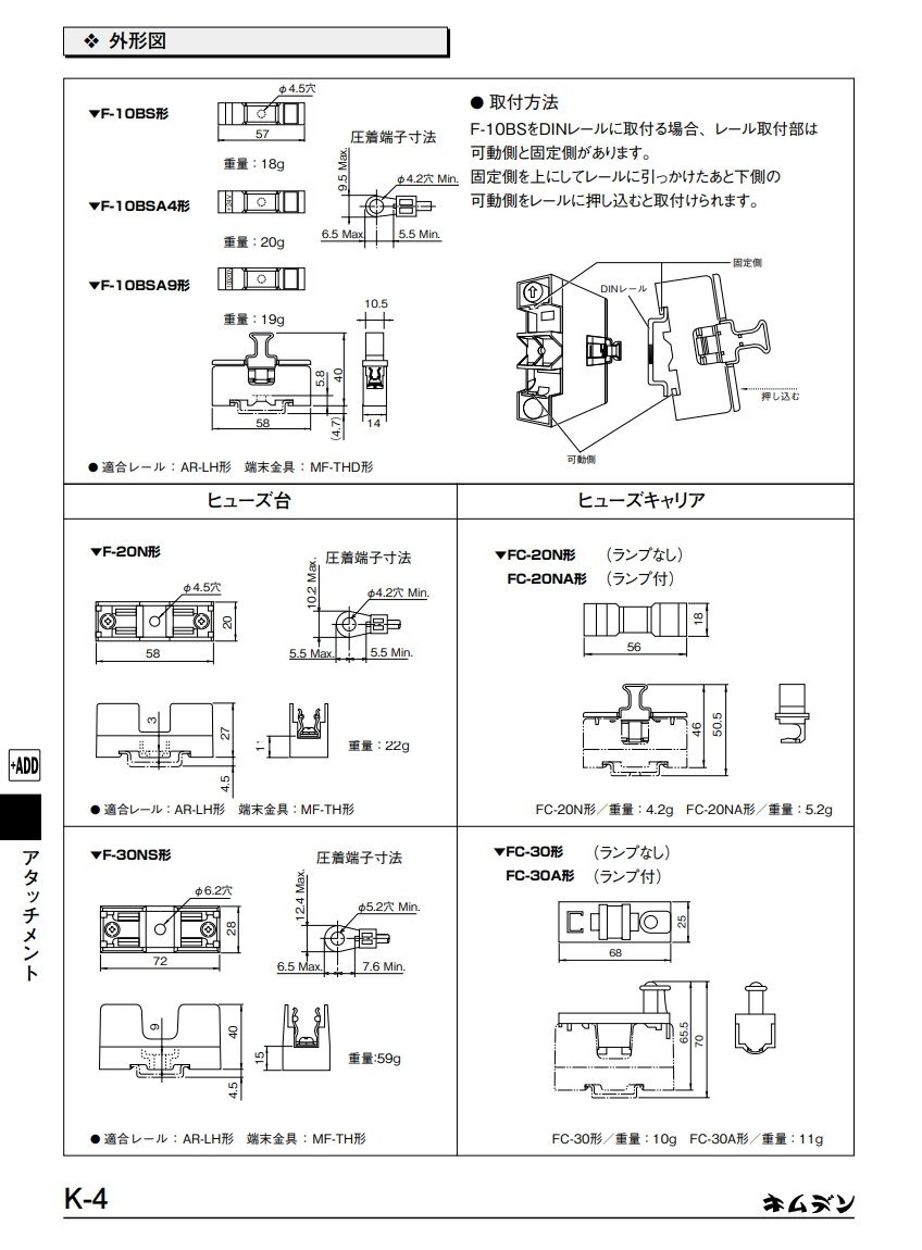 キムラ電機 F-10BS ヒューズホルダー (AC250V/10A) [2個組]【管理:SA717】