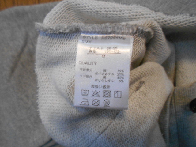 | サイズ表記:M 肩幅:約53cm、脇下辺り:約54cm、袖丈:約64cm、総丈:約67cm 本体素材:ポリエステル25%、綿75%(リブ部:綿95%、ポリウレタン5%) お色:杢グレー ⇒お色の再現は素人のデジカメ撮影では限界が御座いますので、強いこだわりのある方のご入札はどうぞお控えください。本件はお色の再現が出来ておりません。又、暖色系電灯下の撮影で白飛びしてかなりきれい目に写っってます。ご了承下さい。 こちらは委託品に付き購入価格及び保管期間・状態は不明です ⇒一般的な保管臭、保管皺があります ⇒裏側に糸の飛び出し、引き攣れがあります(表面からは全くわかりません) 本品は自宅保管されていたユーズド品です。当方では特別なメンテナンスは行っておりません。 お気に召さない香りや保管臭、(室内暖色系電灯での確認に付)目の届きにくい場所の汚れ・しみ・擦過傷等の見落としがある場合があります。気になる方はご入札をお控え下さいませ。 ユーズド品と何卒ご理解の上ご入札下さいませ。 返品は承っておりませんので、予めご了承下さいませ。 ご落札後のご連絡・ご入力開始は48時間以内、ご決済は5日以内にお願い致します。 どうぞ宜しくご検討下さいませ。 !)普通郵便:定形外発送をご選択の場合、搬送時の紛失及び破損等につきましては補償致しかねます。又、土日祝配達なし、残業軽減等の事情により、以前よりお届けまでに時間がかかっている様です。予めご了承下さいませ。 !)サイズダウンの為小さく梱包させて頂きます。 | |||