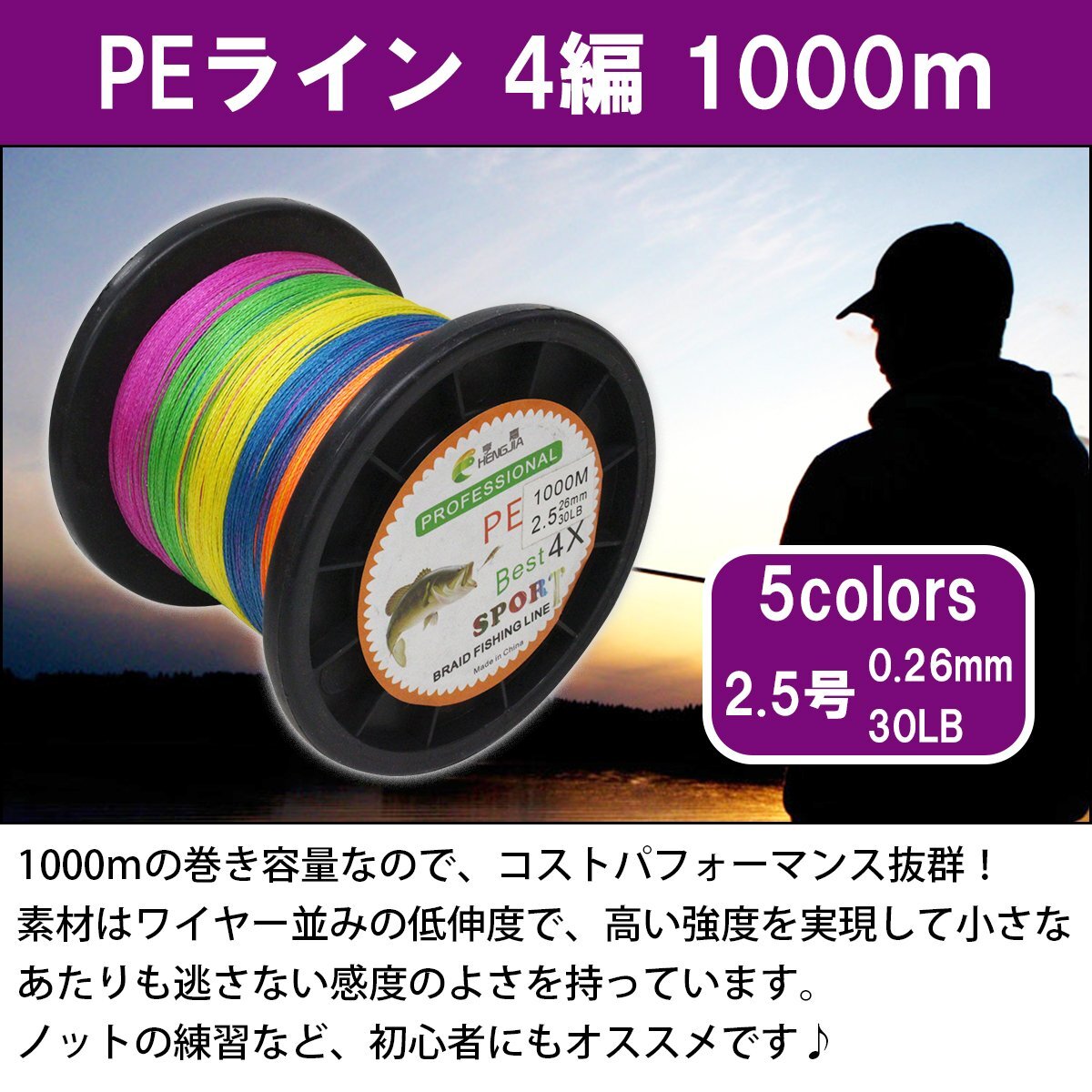 【新品即納】釣り糸 1000m PEライン 2.5号/30lb 5色 マルチカラー MIX 投げ釣り 船釣り ジギング ルアー エギング タイラバ リール