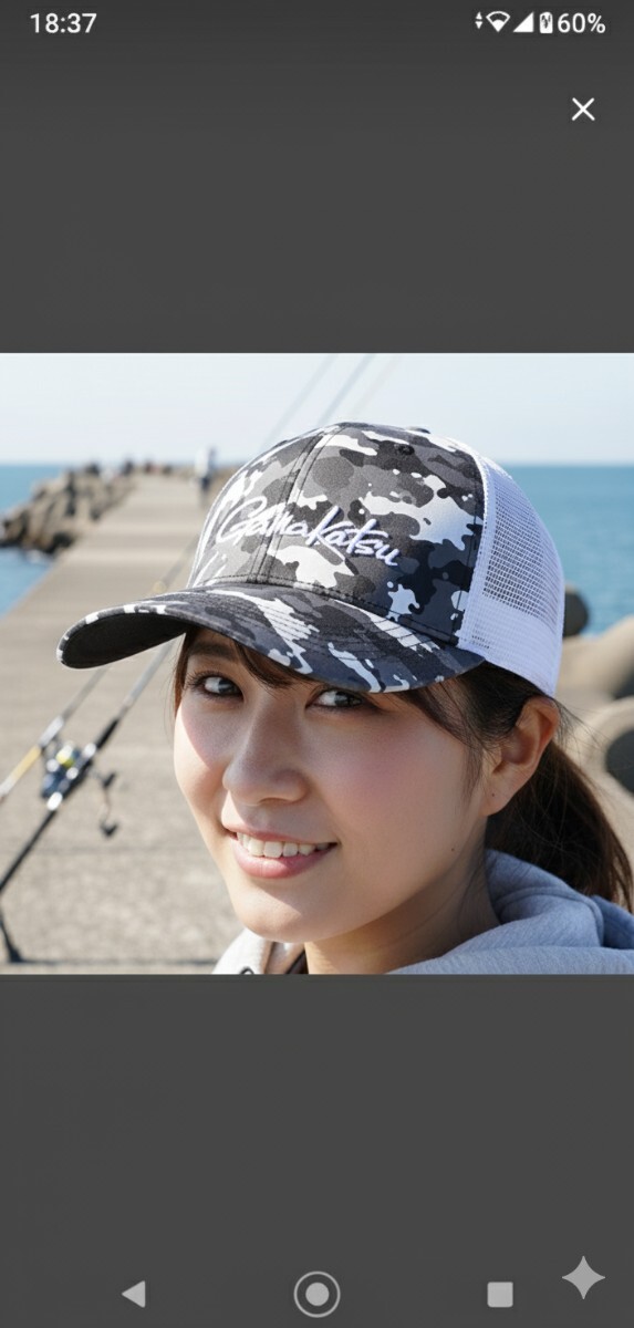 ★硬派のがまかつからポップなデザインが気に入り購入しました。カモフラならぬガマフラがいい感じです。釣り場でも目を引きますね。