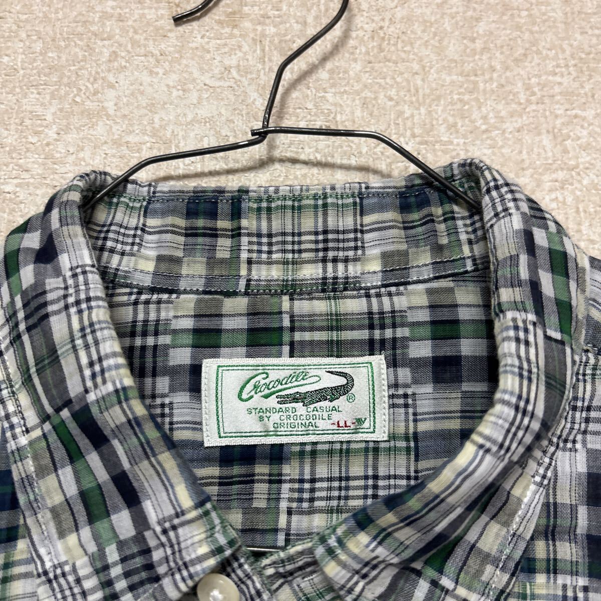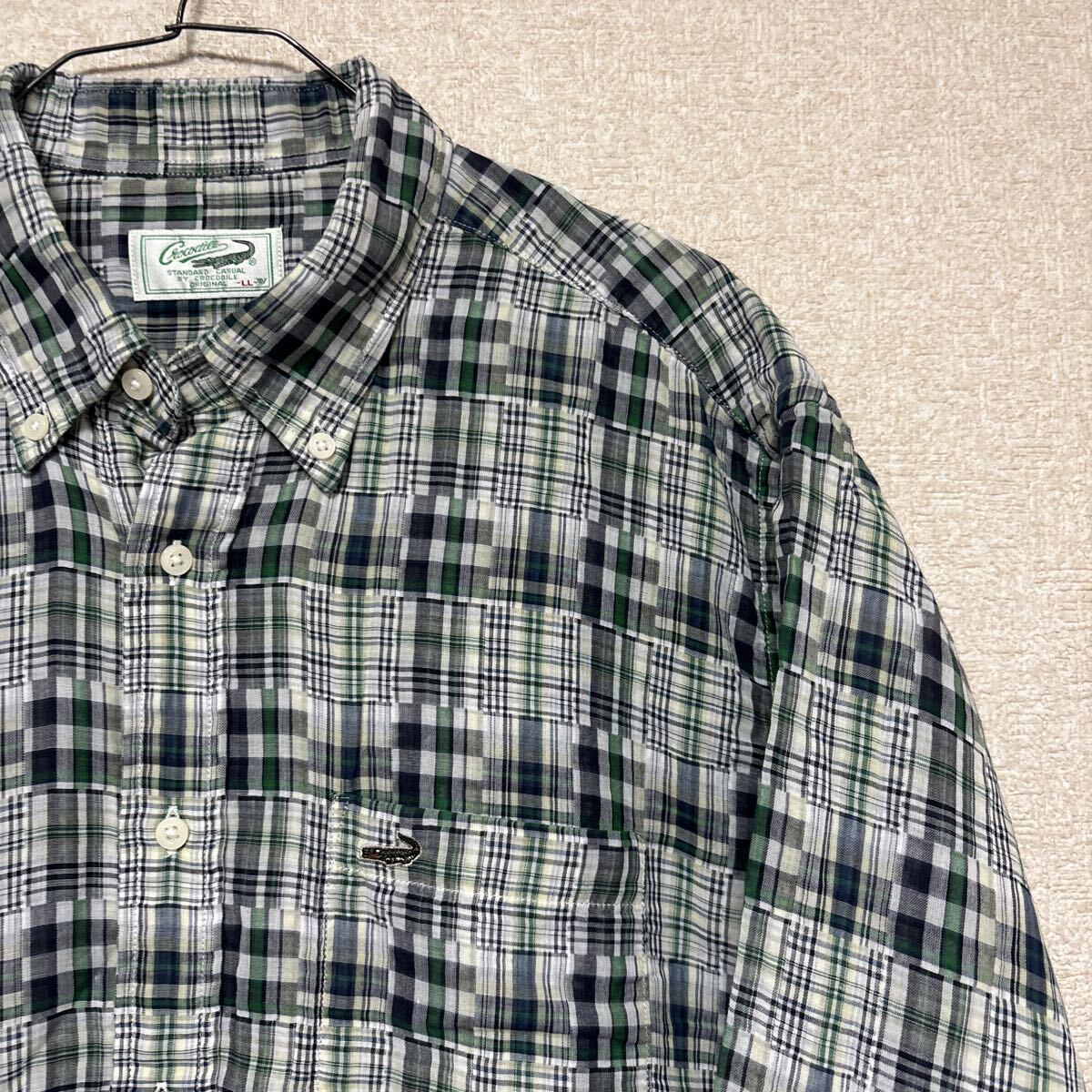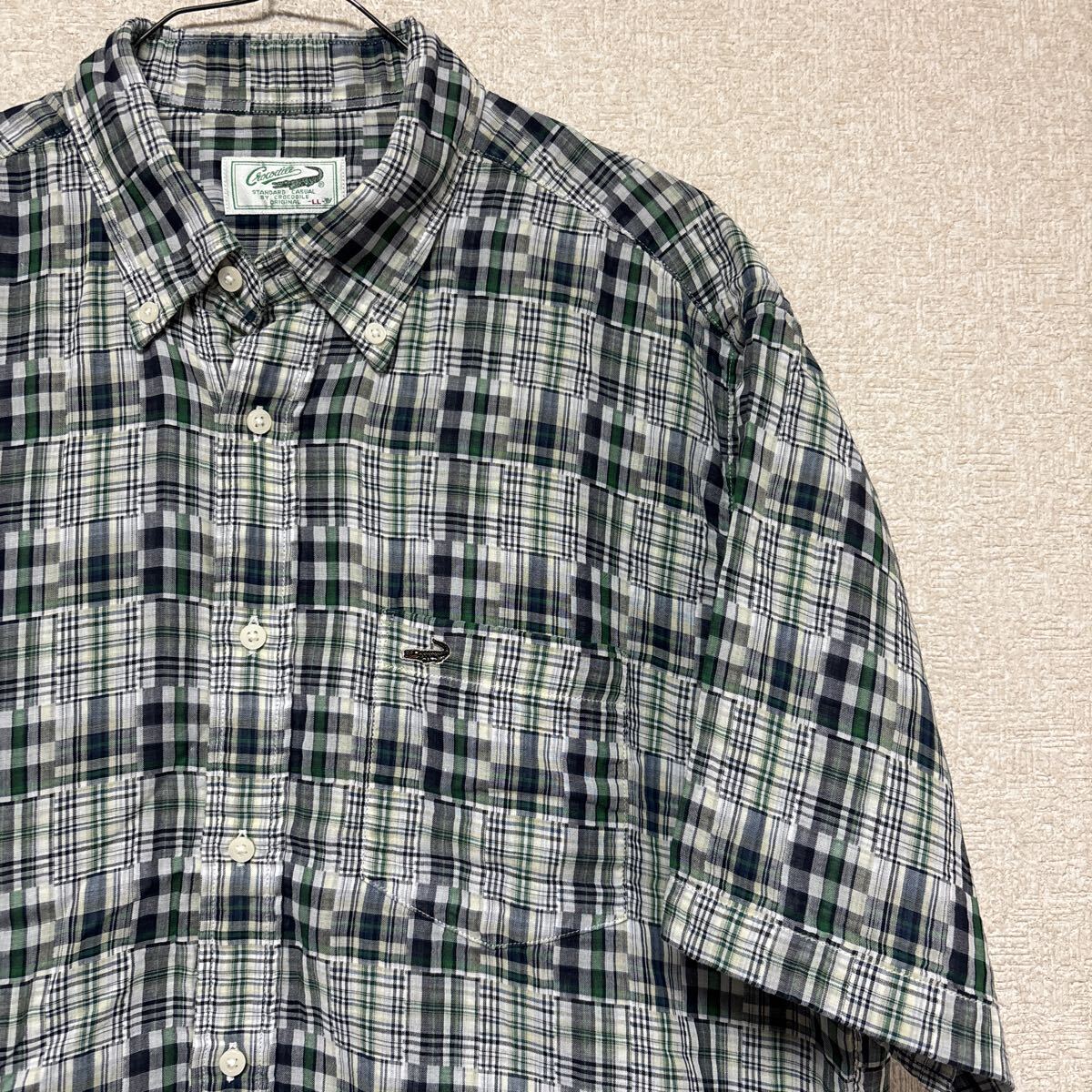 美品 CROCODILE クロコダイル チェック BD ボタンダウン 半袖シャツ LL パッチワーク調 グリーン メンズです。