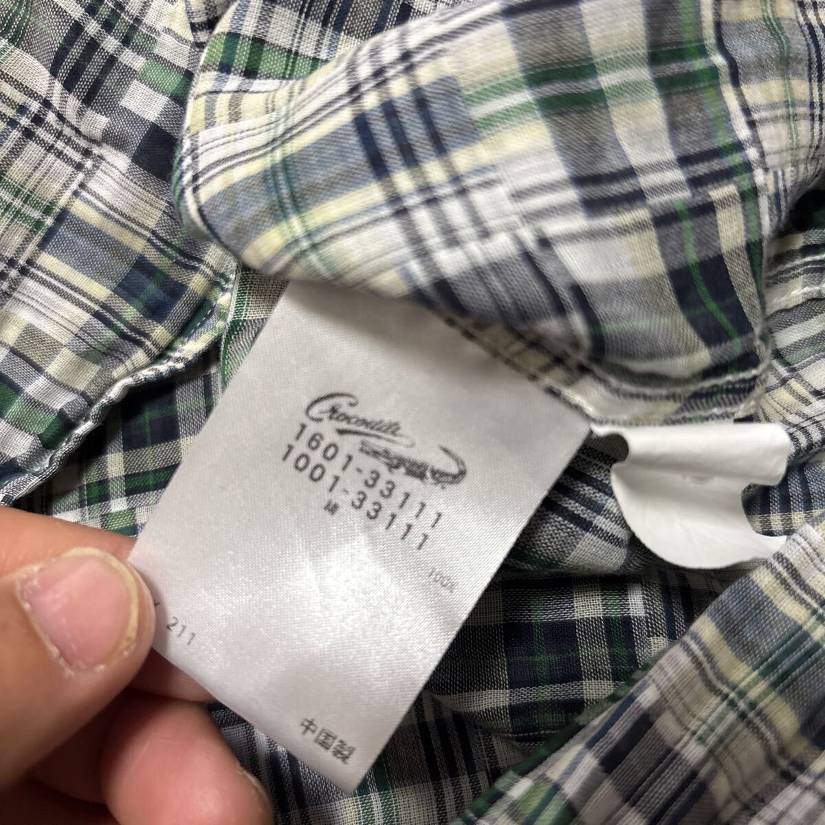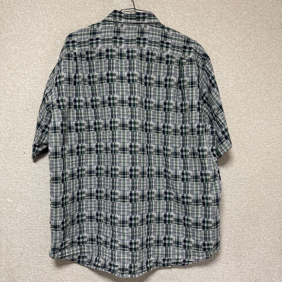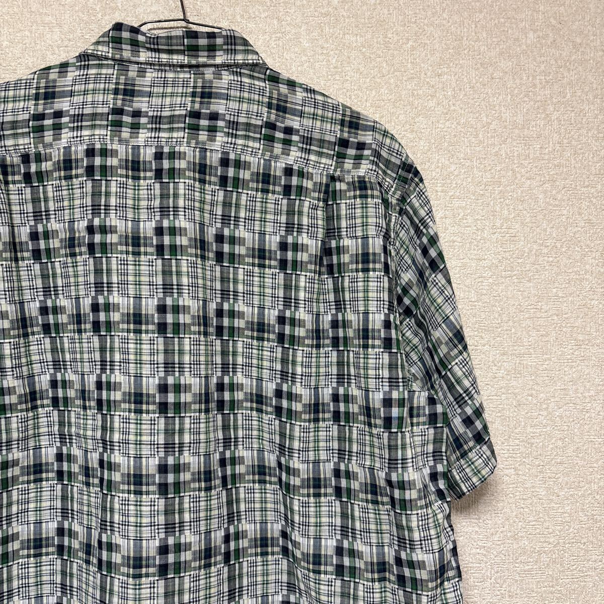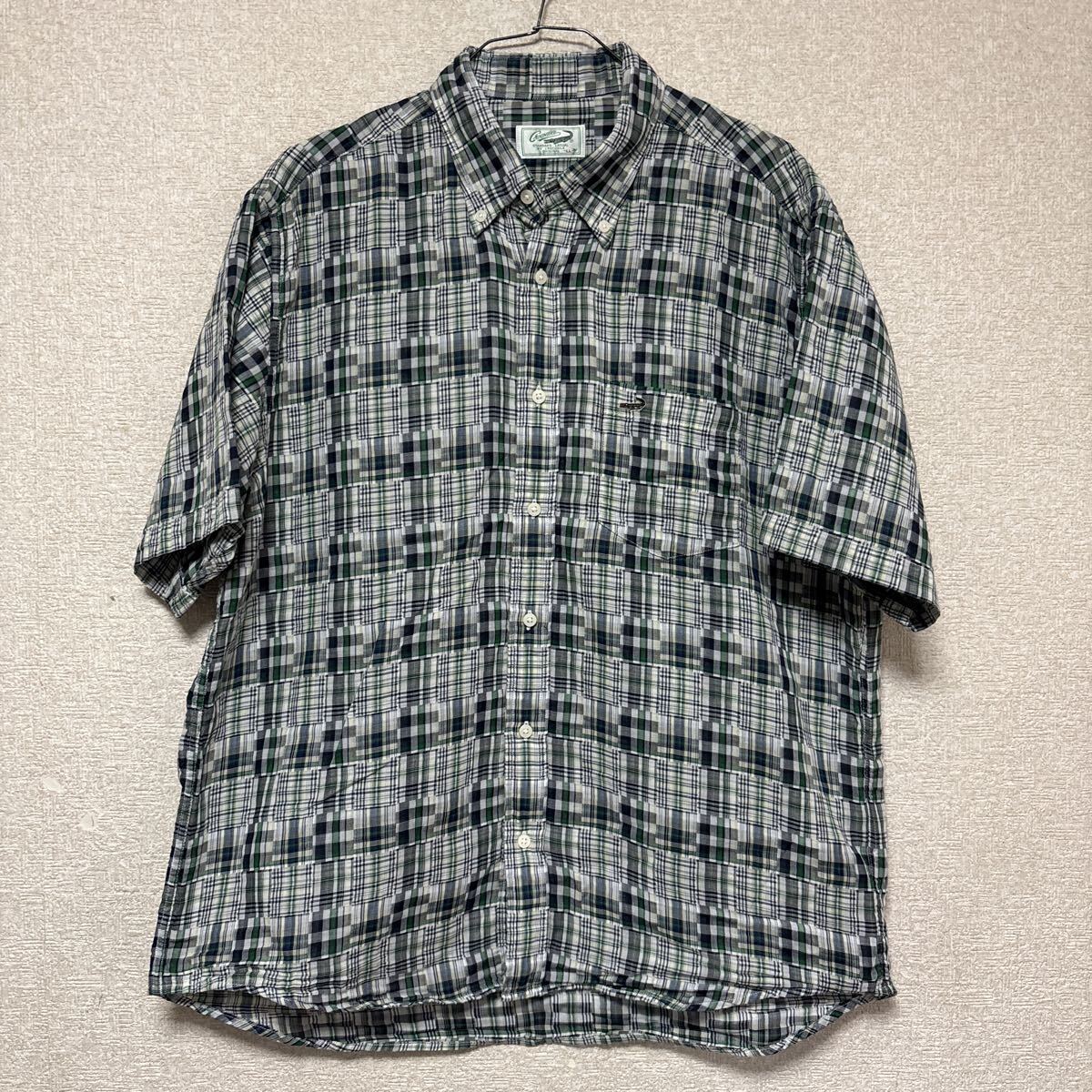 美品 CROCODILE クロコダイル チェック BD ボタンダウン 半袖シャツ LL パッチワーク調 グリーン メンズです。