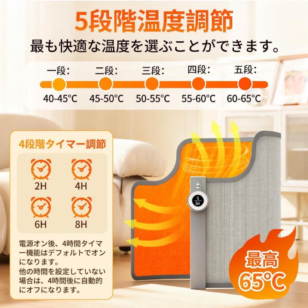 【5段階温度調整・4段階タイマー機能】このパネルヒーターは、5段階の温度調節と4段階のタイマー機能を備えています。操作は直感的でわかりやすく、お年寄りやお子様でも簡単に使用します。パネルヒーター 足元の温度調節は45℃から70℃の間で5段階に調整可能です。周囲の温度や体感に合わせて柔軟に設定を変更できます。タイマー機能は2時間、4時間、6時間、8時間の4段階から選択します。就寝前の足温めや、お子様との団らん時、在宅勤務や動画視聴時など、様々なシーンで便利に使用することができます。