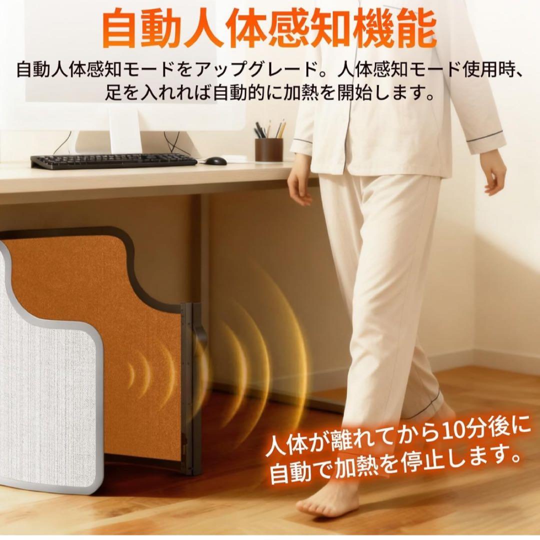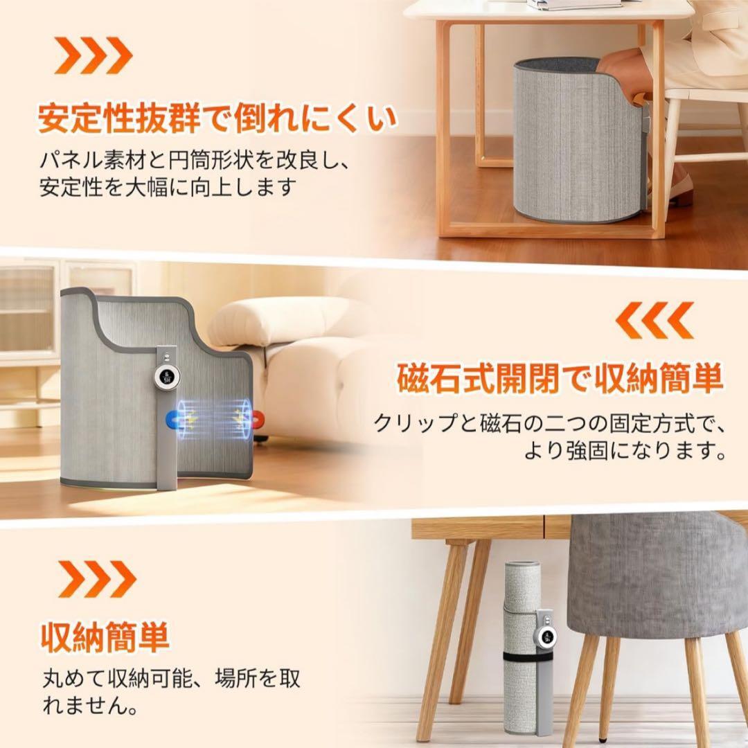 【360°全周加熱・5秒速暖】従来の足元ヒーターを革新し、360度全周カバー構造で足の側面や背面までムラなく温めます。遠赤外線加熱技術とグラフェンヒーターを搭載し、5秒で深部まで届く効率的な温かさを実現します。デスクヒーター パネル式の超薄型ボディはデスク下などの冷気が滞留しやすい空間に適合し、オフィスやリビングでの長時間着座シーンに最適です。冷え性対策や在宅勤務時の足元防寒として、この季節に必携のアイテムです。