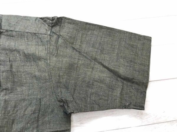 ウンガロ ungaro レトロ ユーロ フレンチ トラッド 綿麻 コットンリネン 胸ポケット 半袖 シャンブレー シャツ メンズ L カーキ です。
