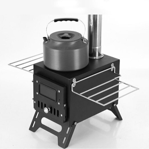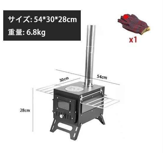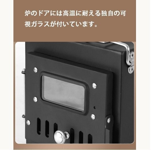 屋外薪ストーブ 煙突付き 折りたたみ 耐熱ガラス窓付き 棚付き 組立式 焚き火台 暖房 アウトドア キャンプ