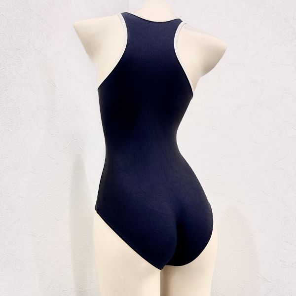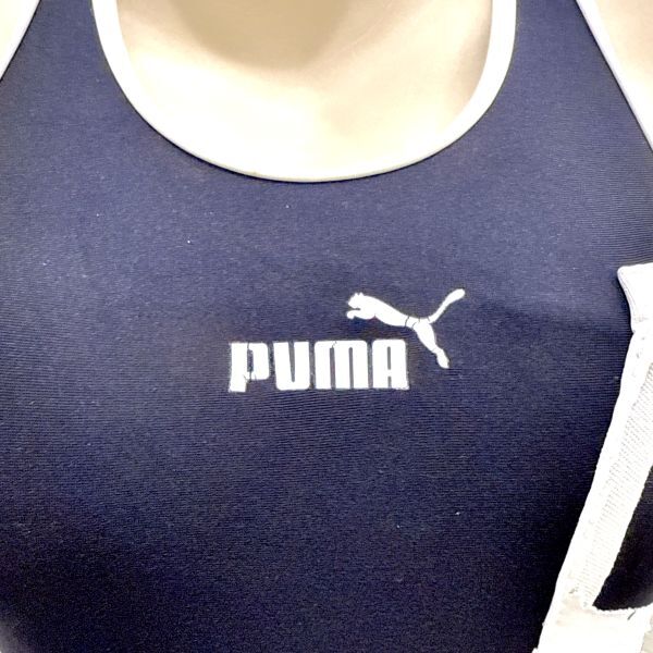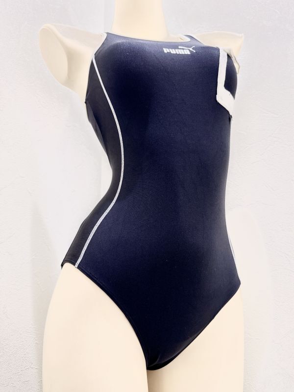 14プーマPUMA女子競泳水着160(Lサイズ程度)★微光沢ブラック黒ホワイト白パイピング★大きいサイズ男性も