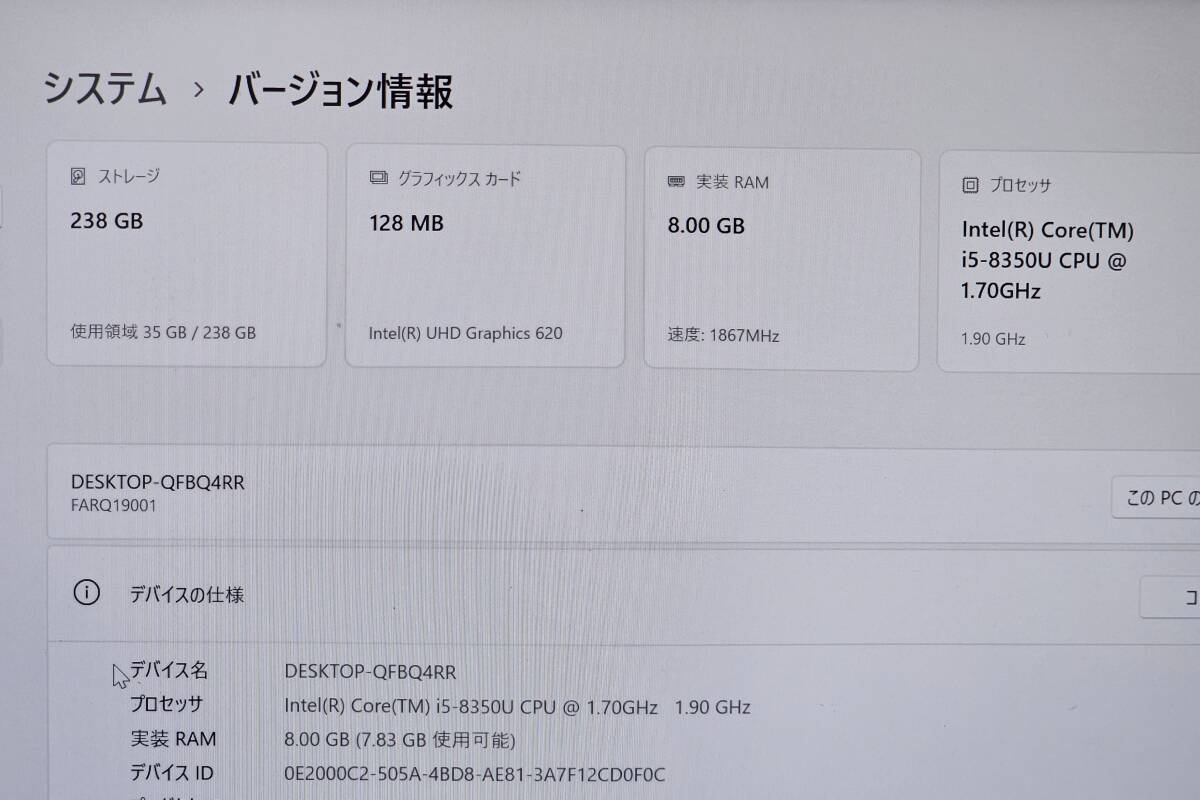| CPU | Core i5 8350U | 光学式ドライブ | |