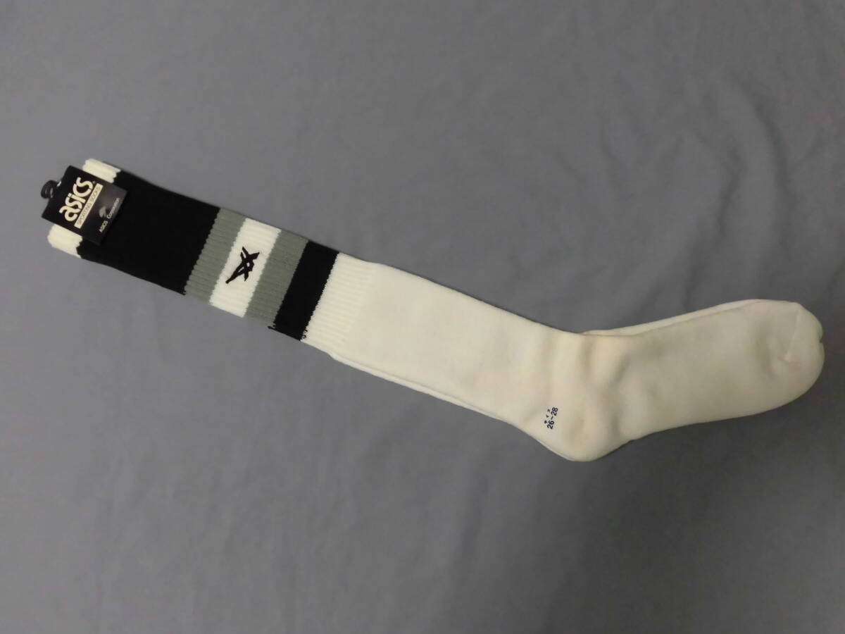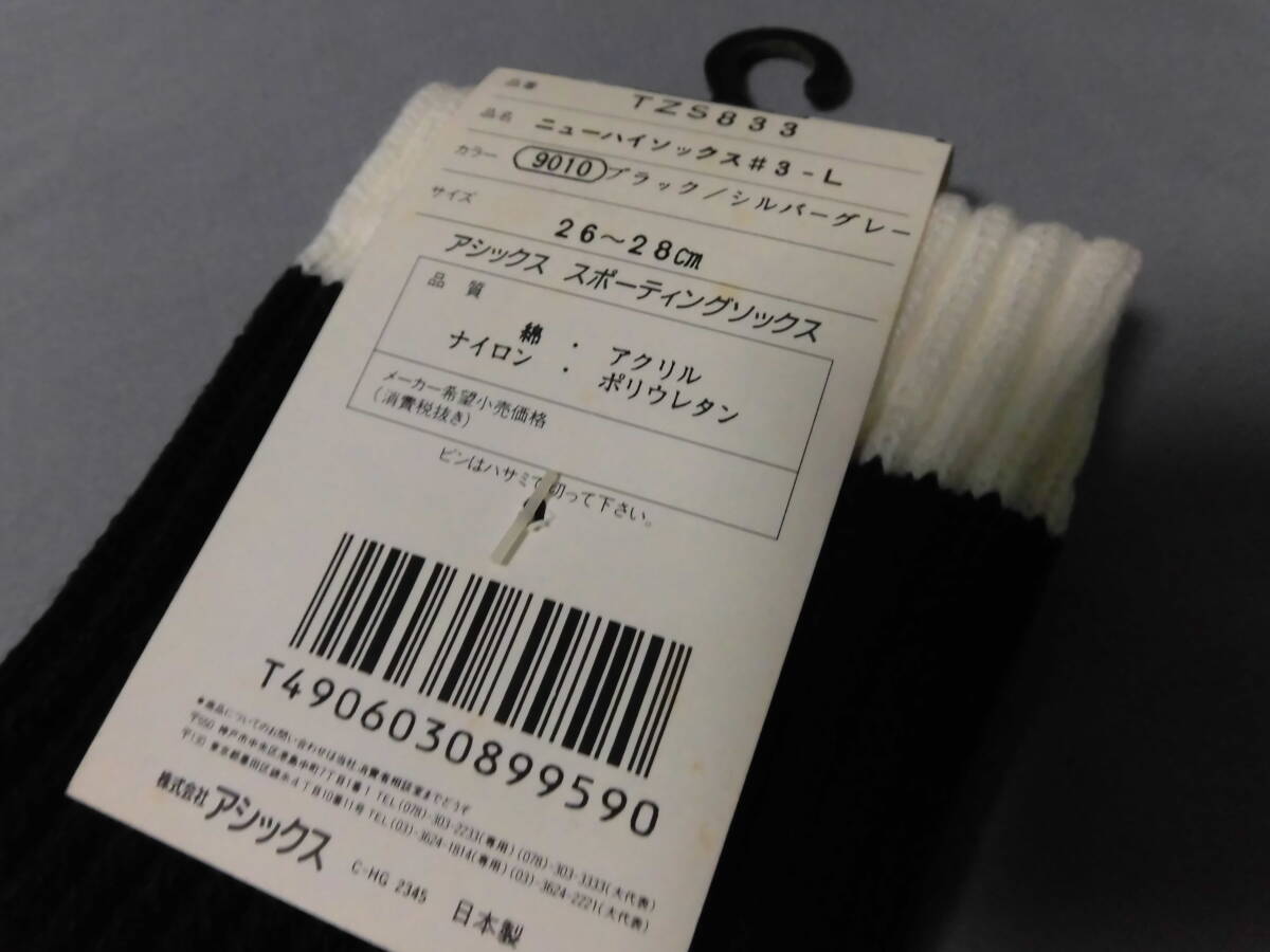 レトロ アシックス ハイソックス 26~28 シルバーグレー ブラック 靴下 スポーツ バレー バスケ 未使用 長期保管品 5605