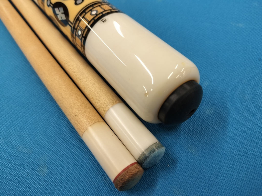 ●シャフト2は未使用品ですがキューケースでの保管時にケース内のチョーク汚れがタップに少し付着しています。