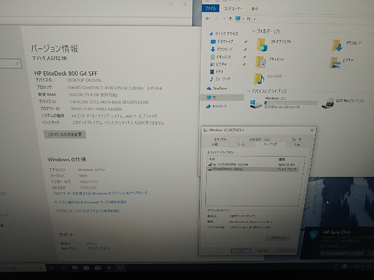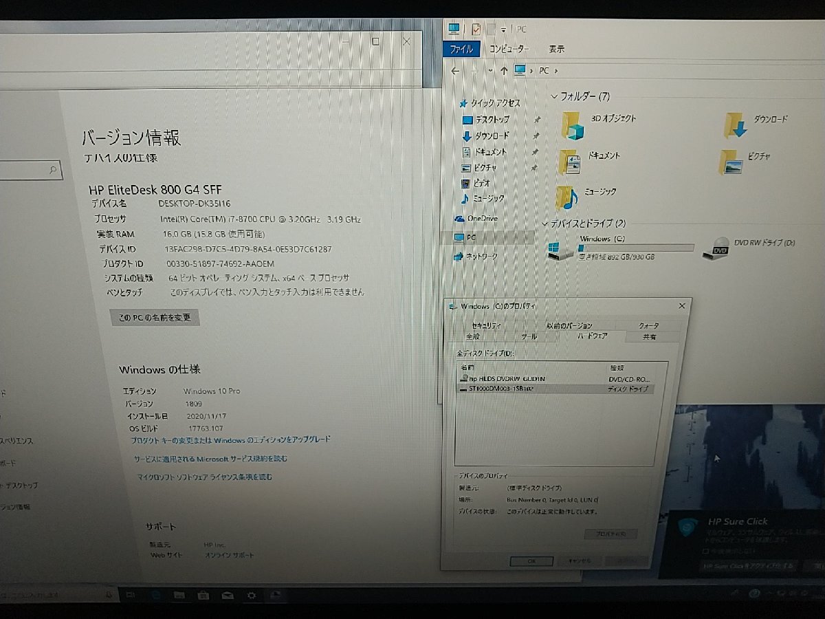 | HP EliteDesk 800 G4 SFF i7-8700 メモリ16GB HDD1TB 中古現状品 デスクトップPC 本体のみ | ||