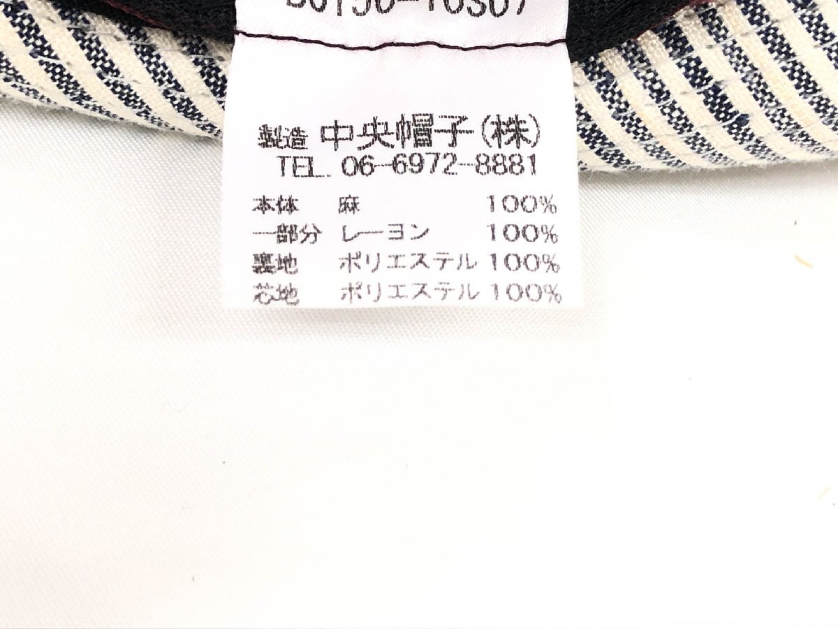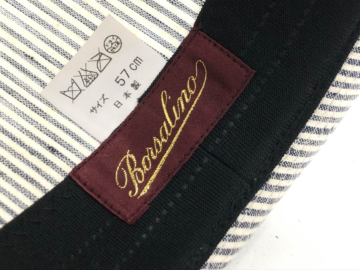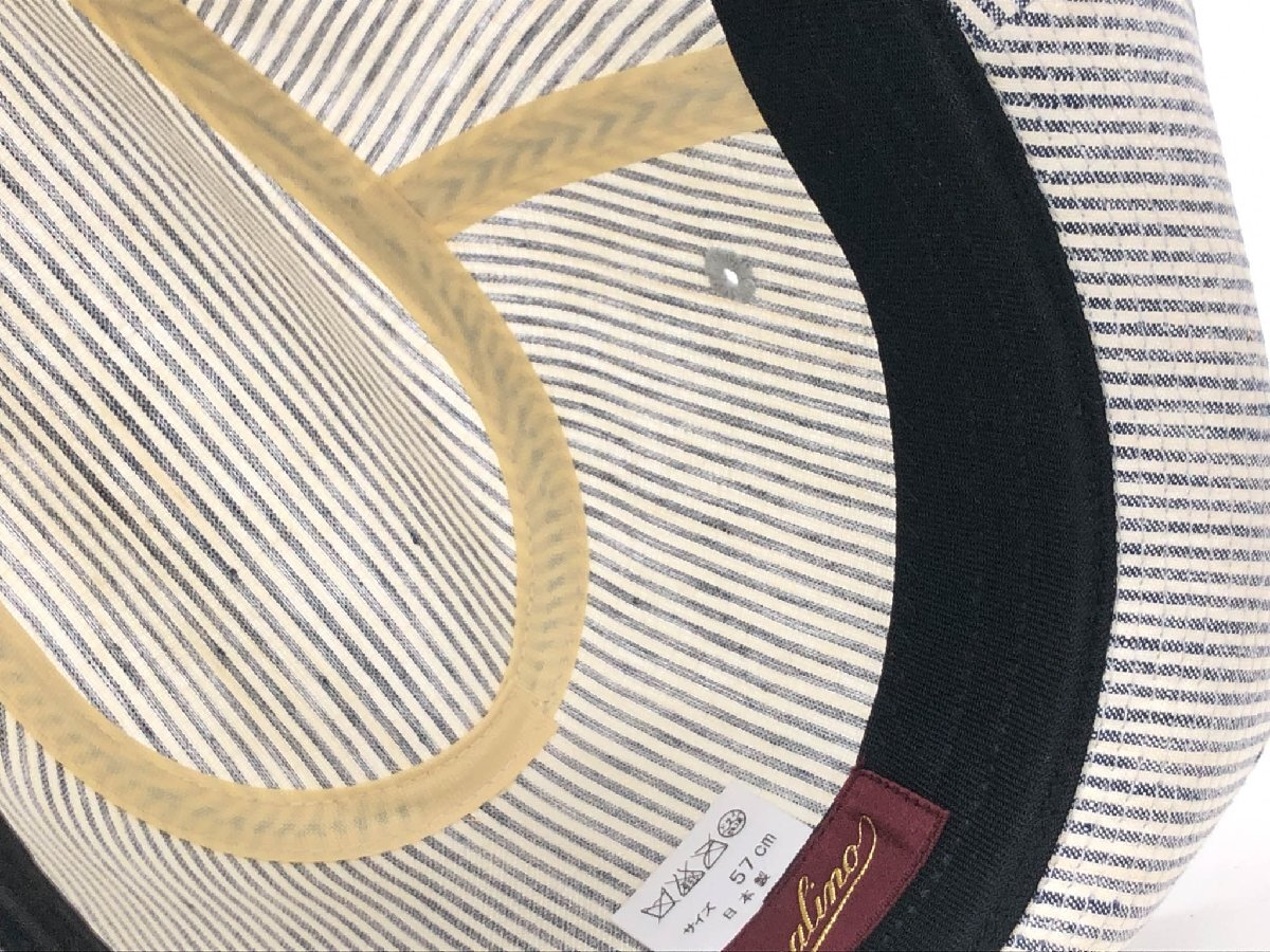 超美品【Borsalino ボルサリーノ】 中折れ ストライプ柄 リネンハット (メンズ) size57cm オフホワイト×ネイビー イタリア製 ◇33LE3999