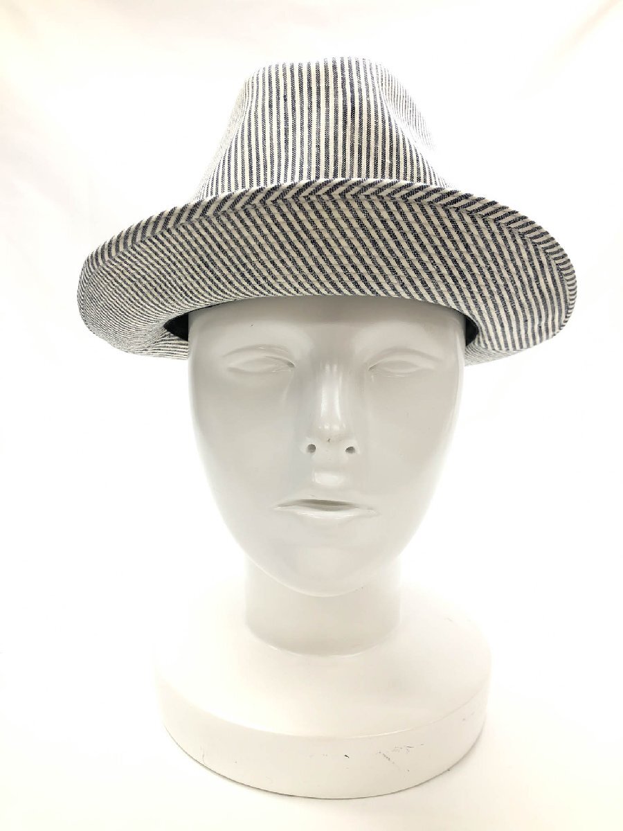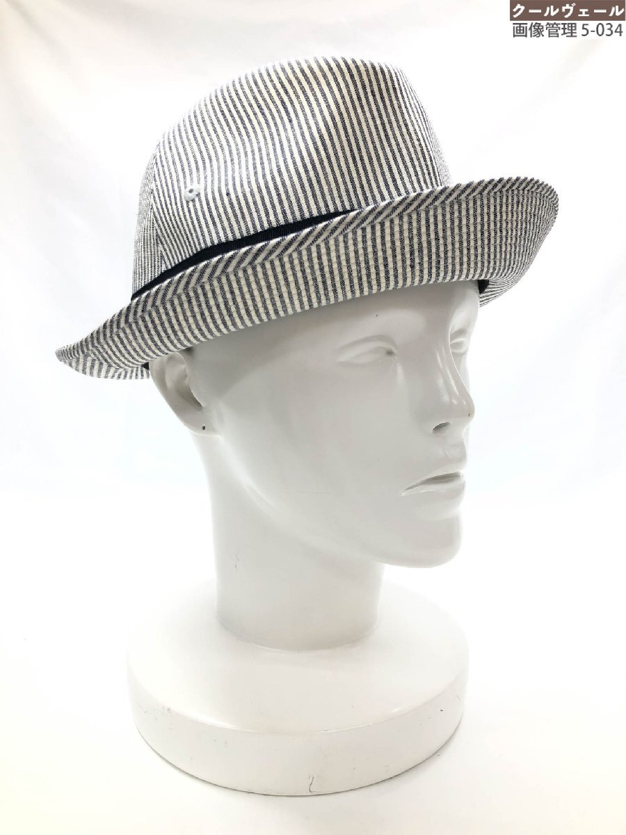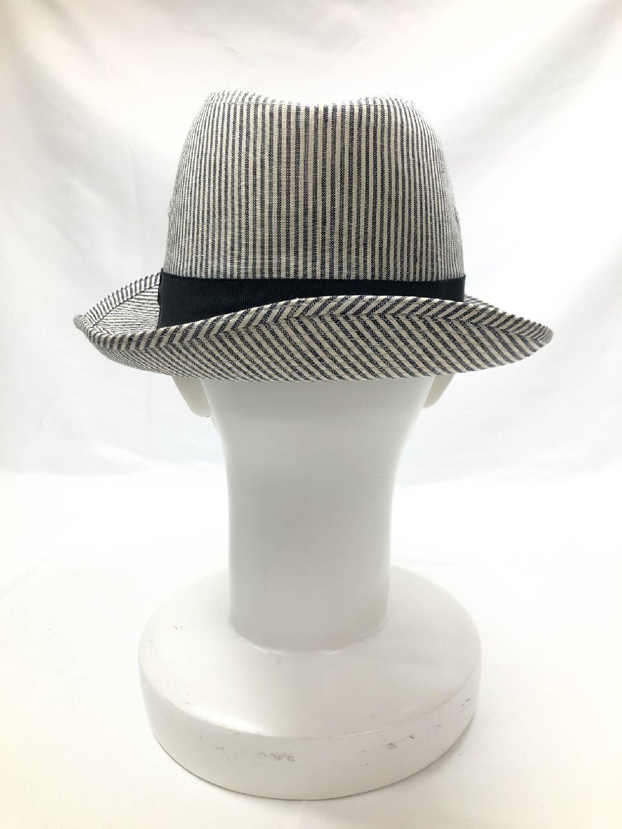 超美品【Borsalino ボルサリーノ】 中折れ ストライプ柄 リネンハット (メンズ) size57cm オフホワイト×ネイビー イタリア製 ◇33LE3999