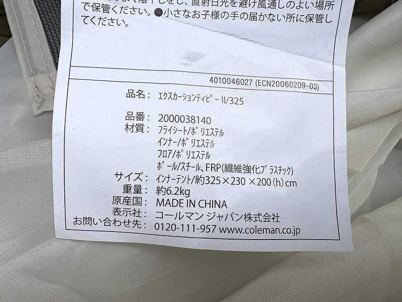 コールマン エクスカーションティピー II/325 型番2000038140です。