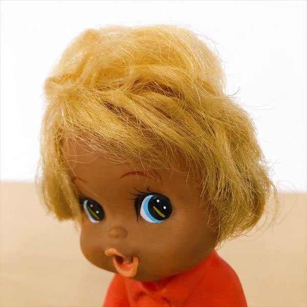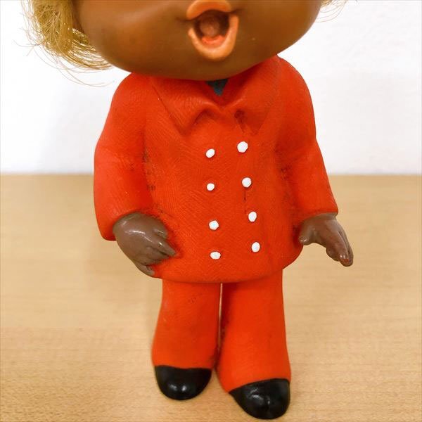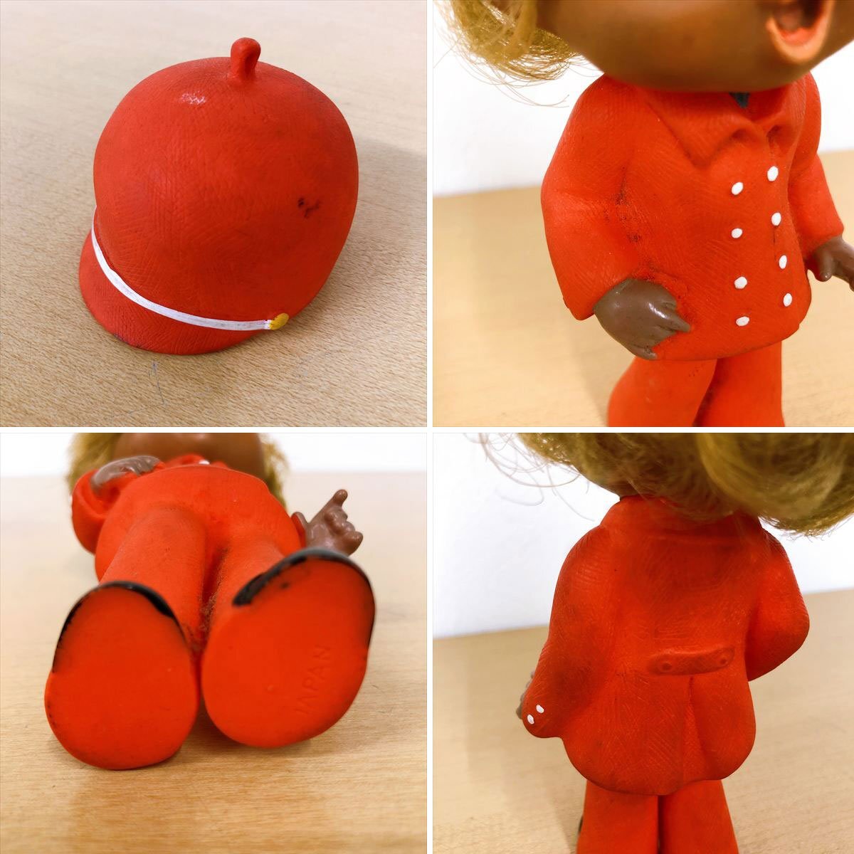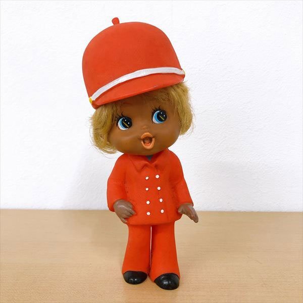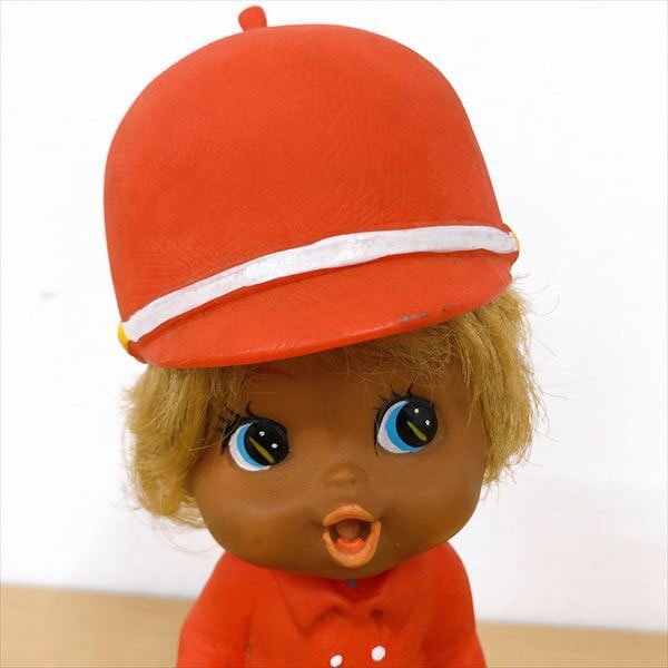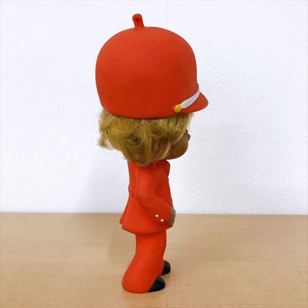 | 中古品 ※画像にあるものが全てです。内容は画像をご覧ください。 年代物と思われます。 全体的に汚れや塵の付着、黒ずみ、塗装剥がれ、変色などあります。 髪は癖がついています。 帽子は着脱可能です。 足裏にJAPANと刻印あります。 キャラクター名やメーカーなど不明です。 仕様