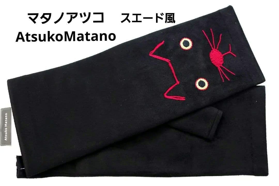 ●マタノアツコ Atsuko Matanoのスエード風フィンガーレスクロネコ手袋 、新品です。 色は黒。素材は本体ポリエステル、ポリウレタンのスエード風の素材です。表記寸法は21-22㎝。実寸で全長約23.5㎝。日本製です。