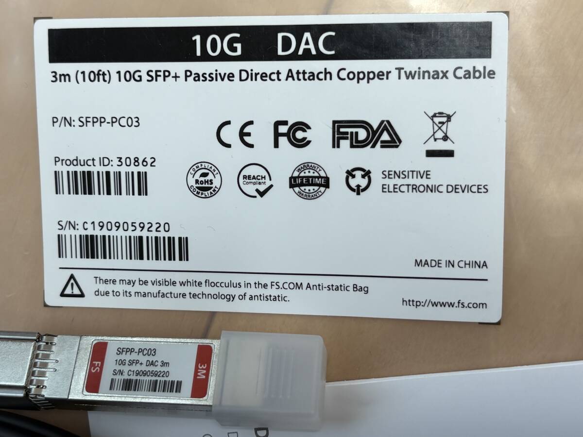 FS.com SFPP-PC03 10G SFP+ DAC 3m 1本