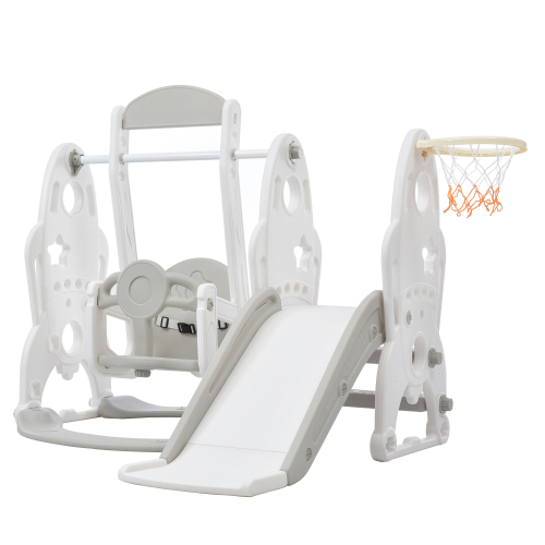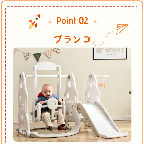 • 【機能満載3in1】かわいいロケット形のパネル 1、滑り台 2、ブランコ 3、バスケットゴール
