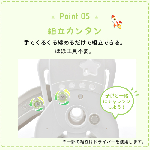 • 【組立カンタン】手でくるくる締めるだけで組立できる。ほぼ工具不要。