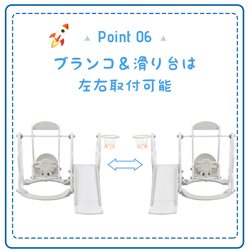 • 【ブランコ&滑り台は左右取付可能】ブランコ&滑り台は左右取付けできる。