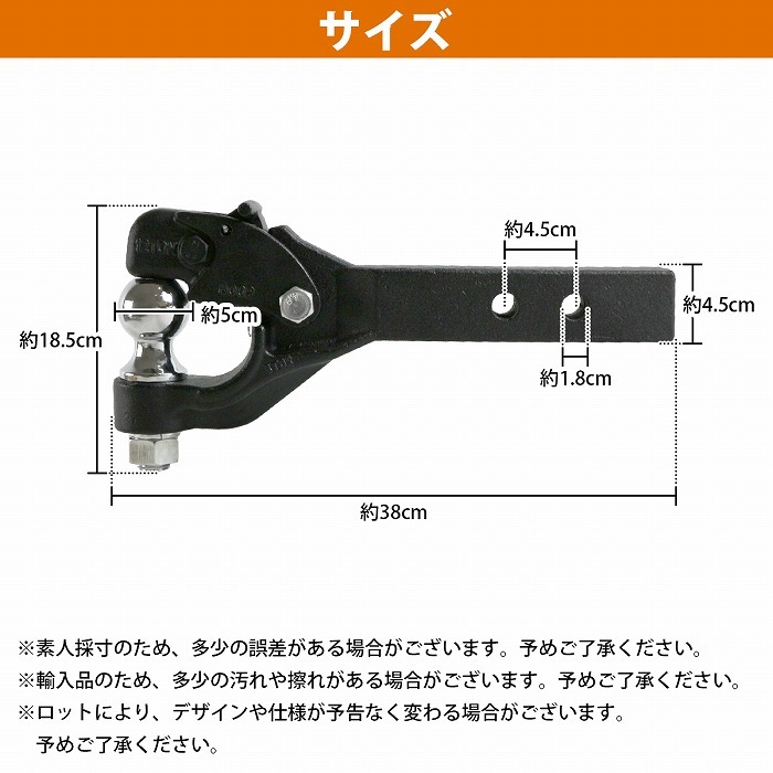 レシーバー マウント ピントルフック 牽引能力8トン 8t ヒッチメンバー ボールマウント ブラック 黒 50mm 角 50角 2インチ
