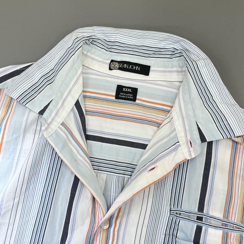ショーンジョン ビッグサイズ ロゴ 刺繍 ストライプ柄 -