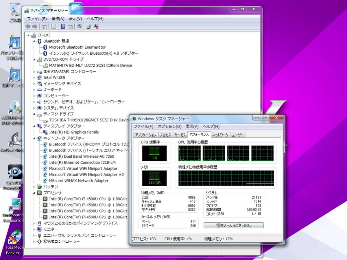 | Panasonic Let's note LX3 CF-LX3TECBR/Core i7-4500U/8GBメモリ/m-SATA SSD128GB/ブルーレイ/HD+ 14.0TFT/Windows7 リカバリ領域有 #0915 | ||
