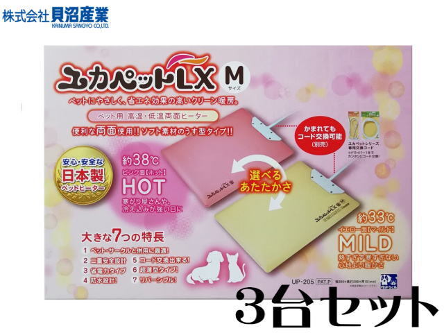 | 商品名:ユカペットLX Mサイズ 3台セット 獣医やブリーダーから絶大な支持があるペット用ヒーターです。 ソフトで超薄型タイプなのでベットやサークルと併用出来ます。 高性能温度コントローラーを使用 省電力タイプ 汚れても丸洗いOK ドライバー1本で簡単にコード交換可 表・裏各面を高温面と低温面に設定可能 ■商品仕様 Mサイズ:中型犬用 材質:本体塩化ビニール コード長:接続コード2m サイズ:幅390x奥行き295x厚10mm 消費電力:AC100V、25W 表面温度:ピンク面38℃、イエロー面33℃ 電気代:1時間約0.8円 1年間保証付き |
