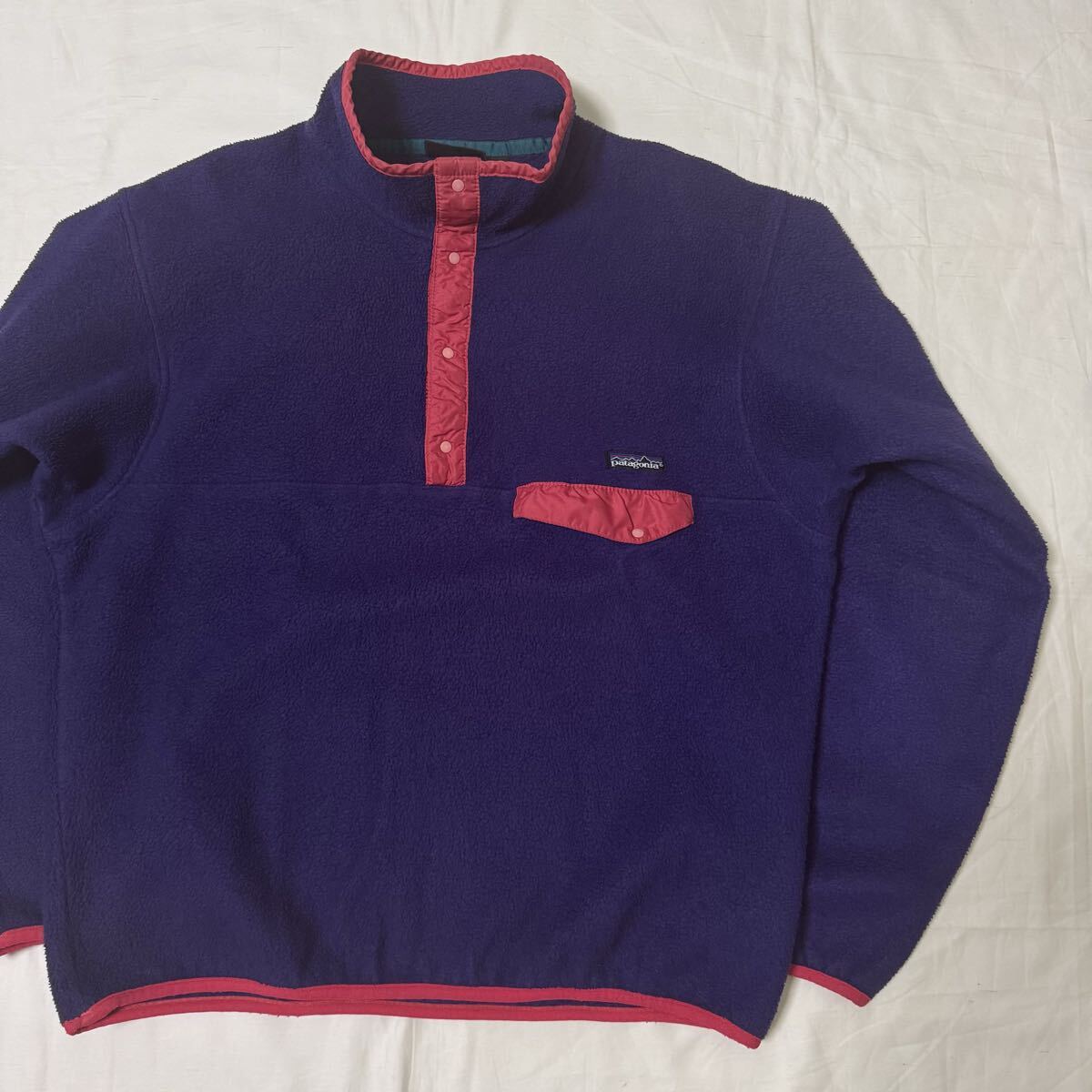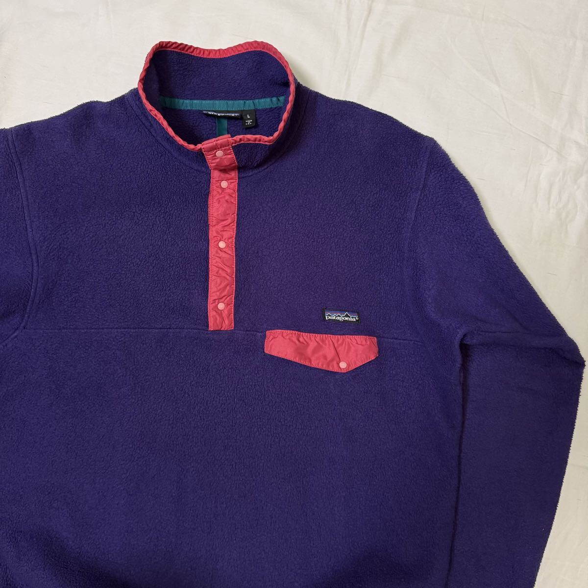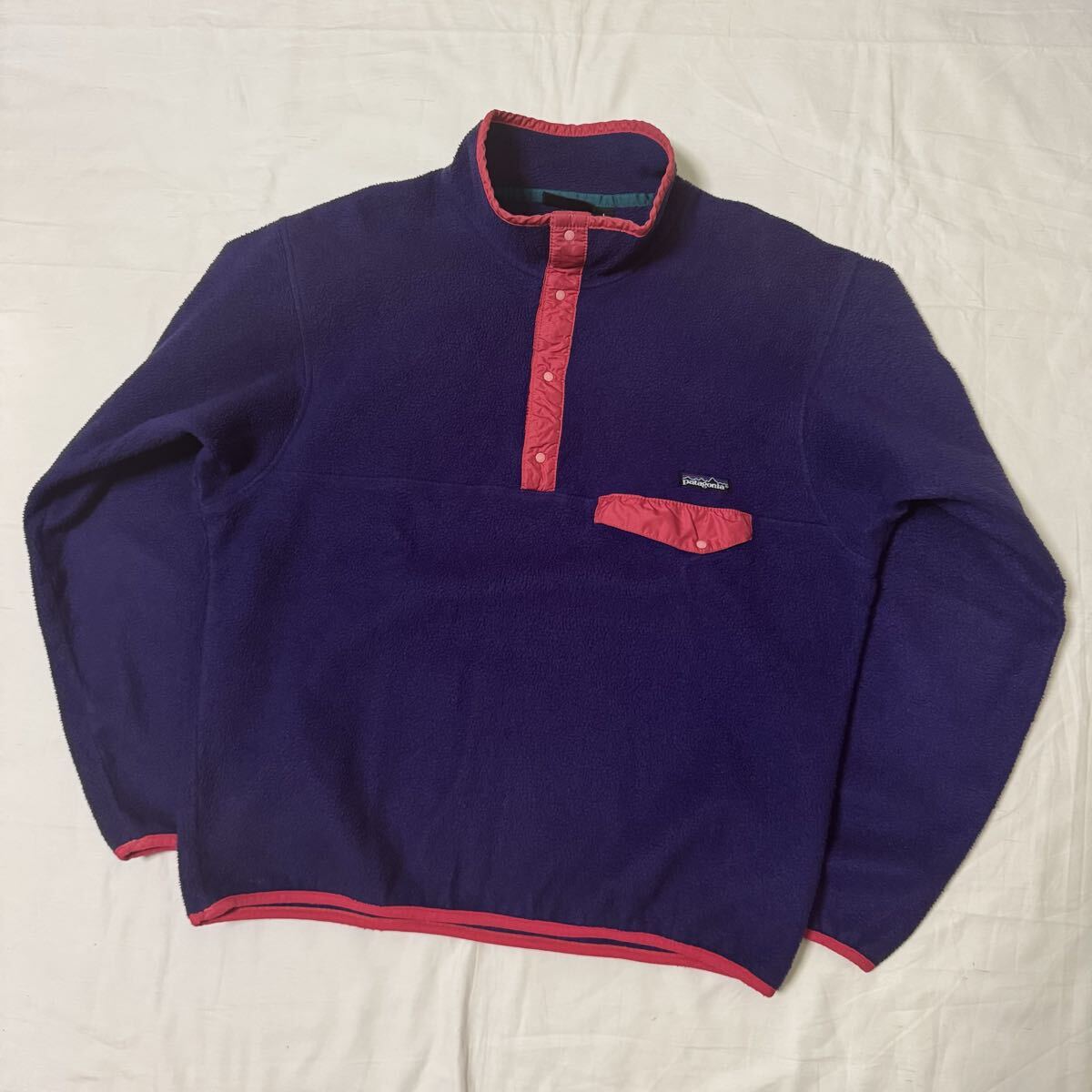 【90s エッグプラント】1990年・限定カラー patagonia メンズ・シンチラ・スナップT・プルオーバー25530F0肉厚フリースUSA製RマークLサイズ