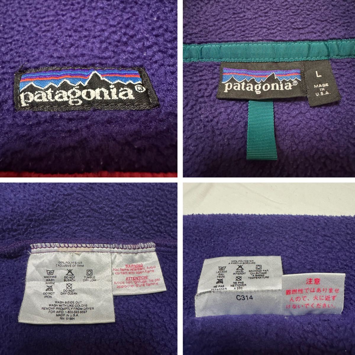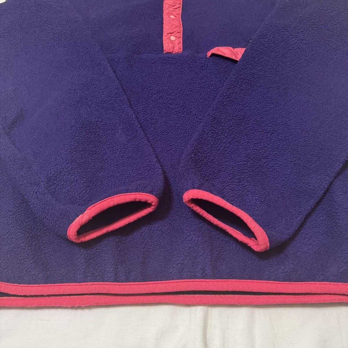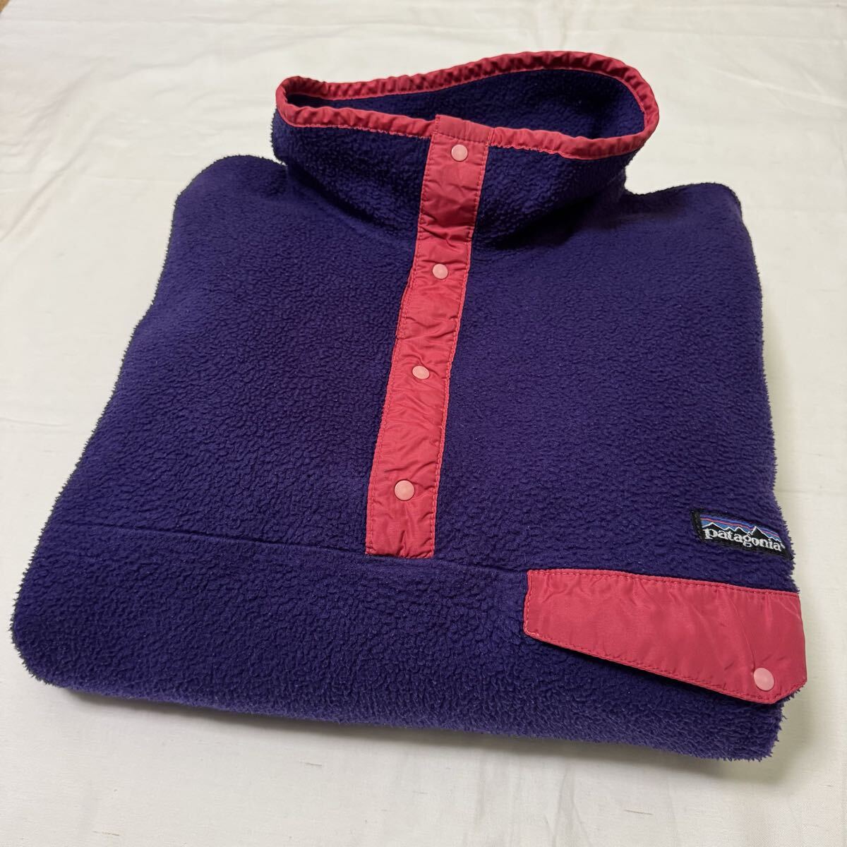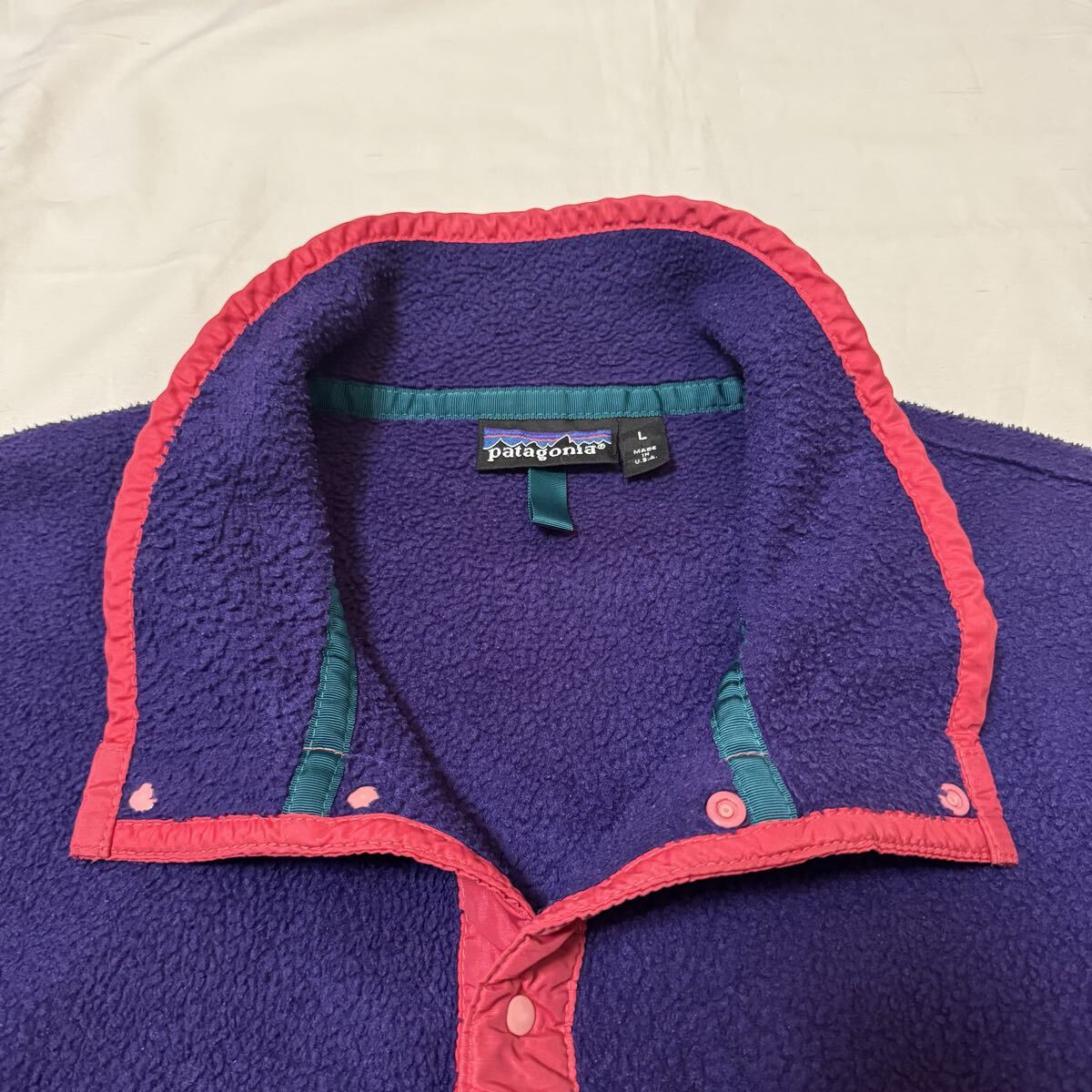 【90s エッグプラント】1990年・限定カラー patagonia メンズ・シンチラ・スナップT・プルオーバー25530F0肉厚フリースUSA製RマークLサイズ