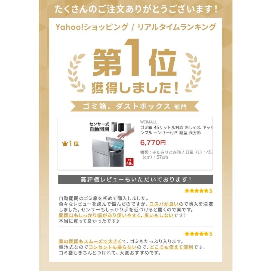とっても便利!センサーでフタが自動開閉! 手をかざすとセンサーが感知してフタが開きます。 直接手を触れずに開けられるので、とっても衛生的です! 台所はもちろんのこと、赤ちゃんのおむつ捨て、医療の現場にもぴったり♪ 手動でも開閉可能!ボタン操作できます。 電池式なので電源を気にせず、どこにでも設定できます☆ 大容量な48Lタイプでシンプルなデザイン。 キッチンやリビングなどに置いてもマッチしやすいです。 【商品仕様】 内容:本体 ×1 カラー:ブラック 容量:48L サイズ:(約)幅26.5cm×奥行き41cm×高さ57cm 重量:(約)4.3kg 使用電池:単二電池×4(別売) 素材:ステンレススチール、ABS樹脂 他 ※本商品には電池は付属しておりません。 ※紙のゴミ袋には対応しておりません。 ※商品はモニターによって色合いが異なって見える場合があります。 ※仕様/デザインは改良のため予告なく変更することがあります。 (ふた付き 45L 45リットル ゴミ袋 おしゃれ 分別 室内 スリム キッチン インテリア雑貨 北欧 リビング くずかご かわいい デザイン 生ごみ オムツ 見えない 収納 カウンター コンパクト 人気 おすすめ) |