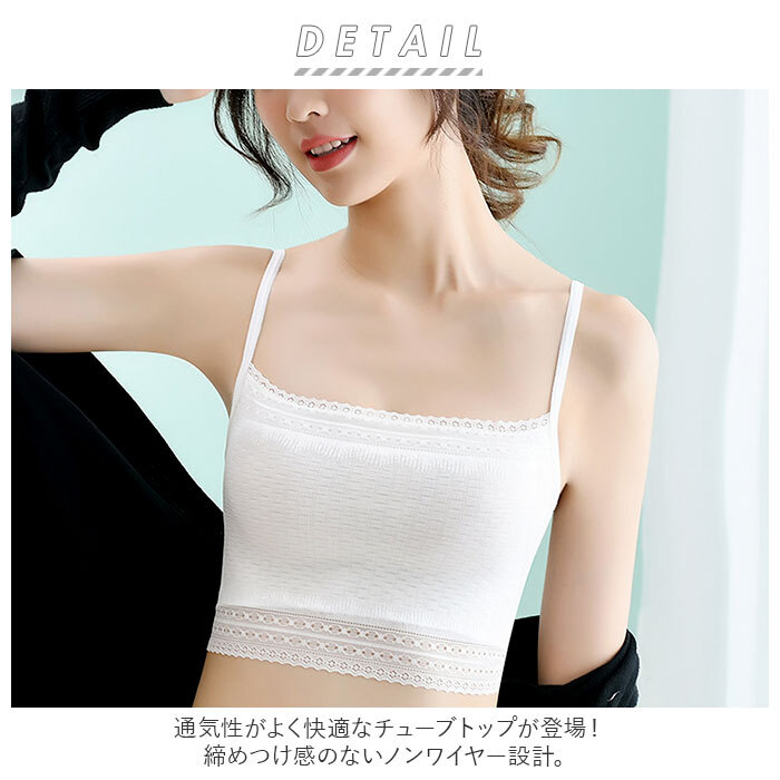| 商品説明 | ・・通気性がよく快適なチューブトップが登場! ・締めつけ感のないノンワイヤー設計。 ・伸縮性のある素材なので、身体に心地よくフィット。 ・ホックなどがなく、頭からすっぽり被るだけで着脱ラクチン◎ ・ストラップが付いており、ズレないから安心。 ・部屋着としてパーカーの中に着ても可愛い総柄レースのフロントデザイン♪ ・普段使いはもちろん、ナイトブラとして使うのもおススメ。 |
