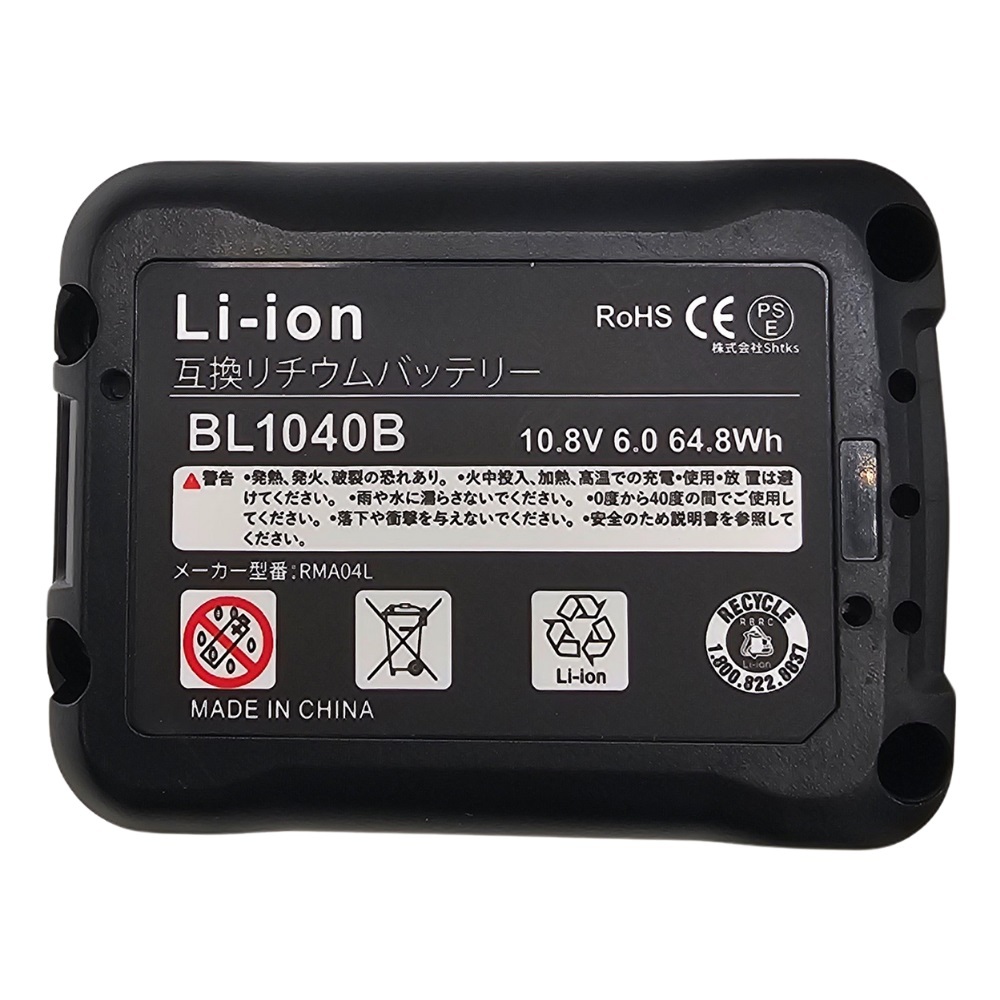 ●【型番】: bl1040b マキタ 10.8v バッテリー互換 電圧:10.8v 容量:6.0Ah 種類:マキタ互換バッテリー 10.8v  BL1015 BL1015B BL1030 BL1030B BL1040 BL1040B BL1021B BL1016 BL1050 DC10SA 等対応