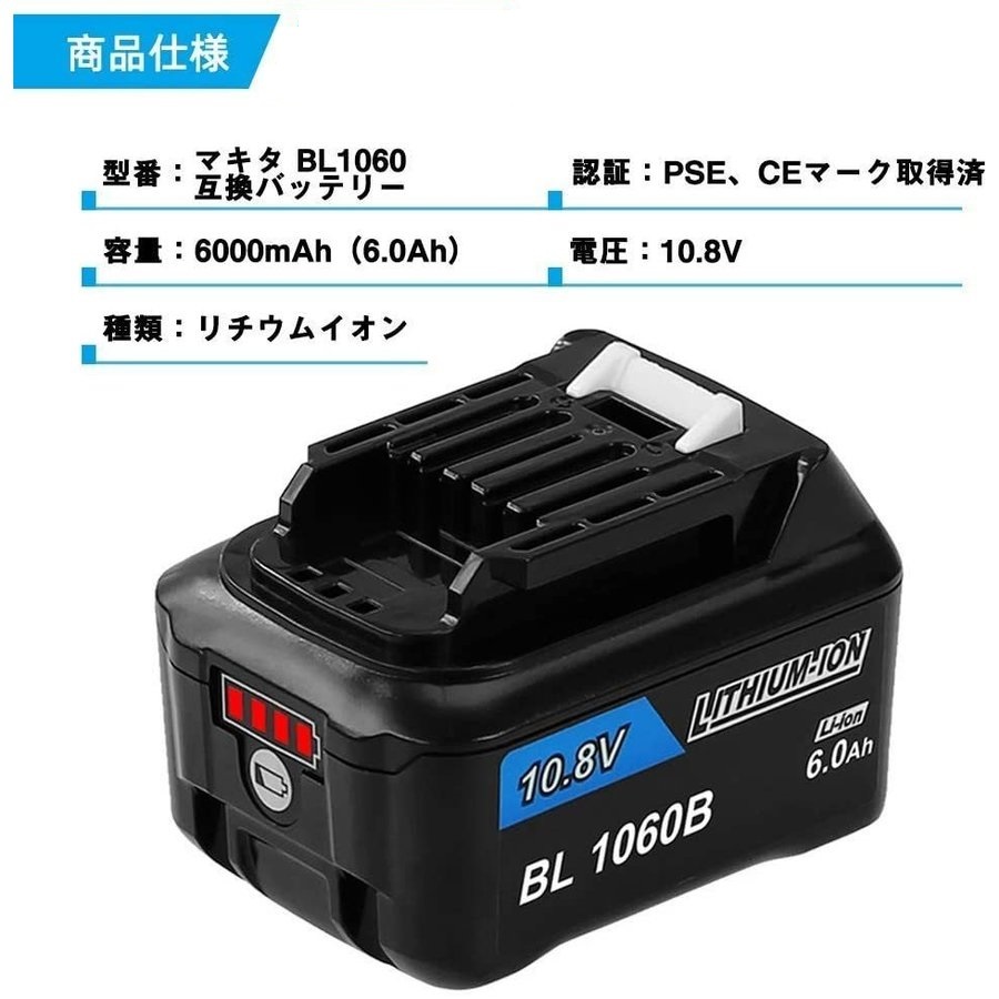 (A) マキタ MAKITA BL1040B 6.0Ah 2個セット 互換 バッテリー 10.8V BL1015B BL1030 BL1030B BL1040 BL1021B BL1016 BL1050 BL1060 等対応