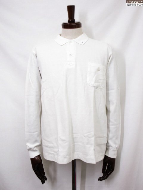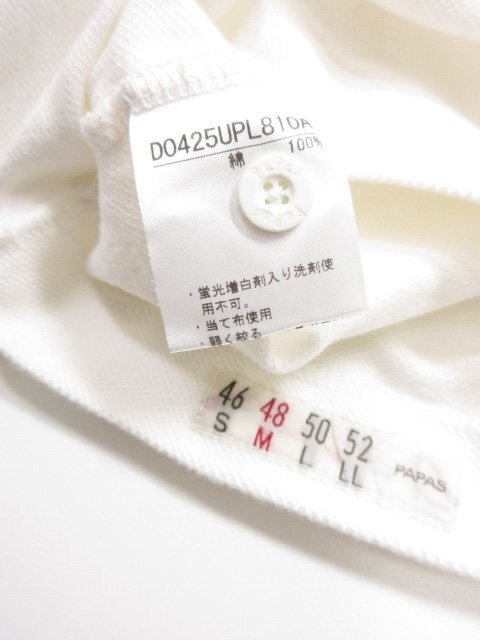 超美品【Papas パパス】 コットン100% 鹿の子生地 長袖ポロシャツ (メンズ) size48/M ホワイト D0425UPL810A ◇33MT6478◇