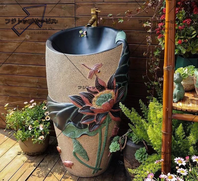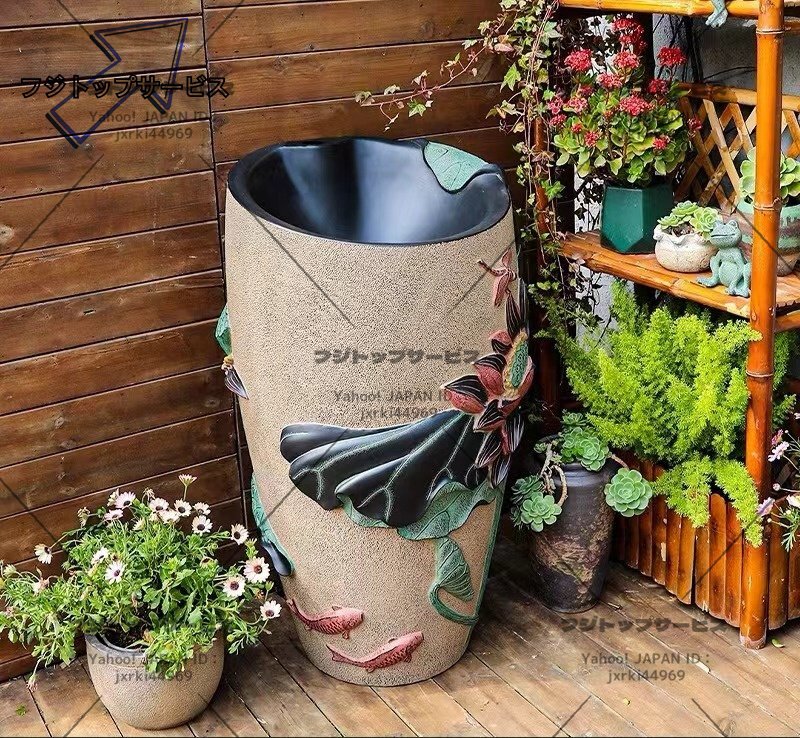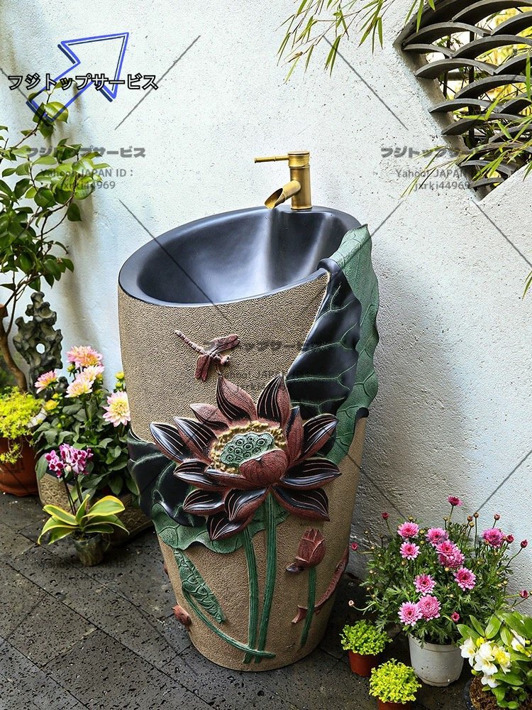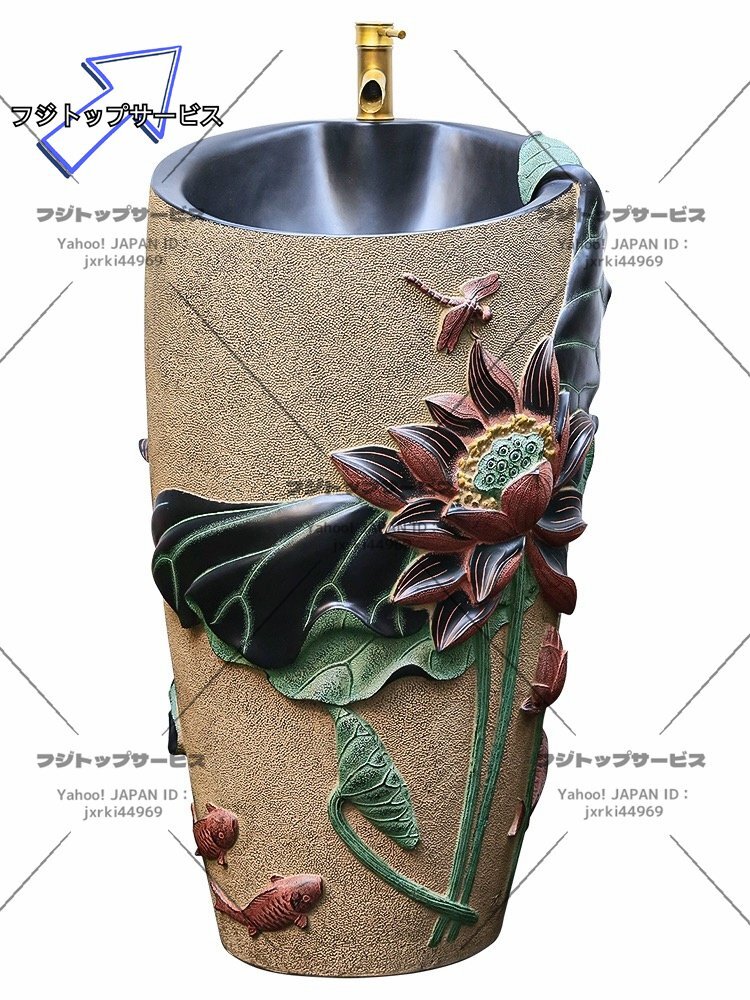 ◆美品◆洗面ボウル 豪華 ハス 洗面台 洗面化粧台 家庭用 手洗台 手洗いボウル シンク 庭 ガーデン 蛇口・排水金具付き