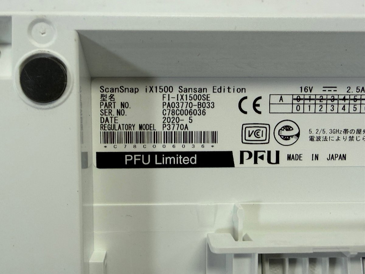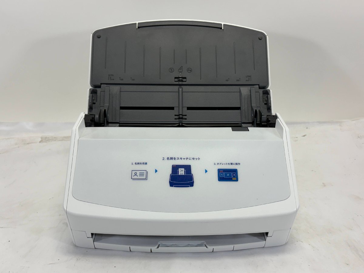 | 機器状態 | ※IX1500 Sansan Editionの為フロントパネルにタッチパネルは搭載されていません。 WIN11 PCにドライバーをインストールし専用ソフト(Scan Snap HOMEから片面・両面のスキャン動作を確認しました。目視の限り抜けはありませんが、スキャンの状態は現状渡しとなります。 WI-FI機能はアクセスポイントと接続しスキャンまで確認しました。 |