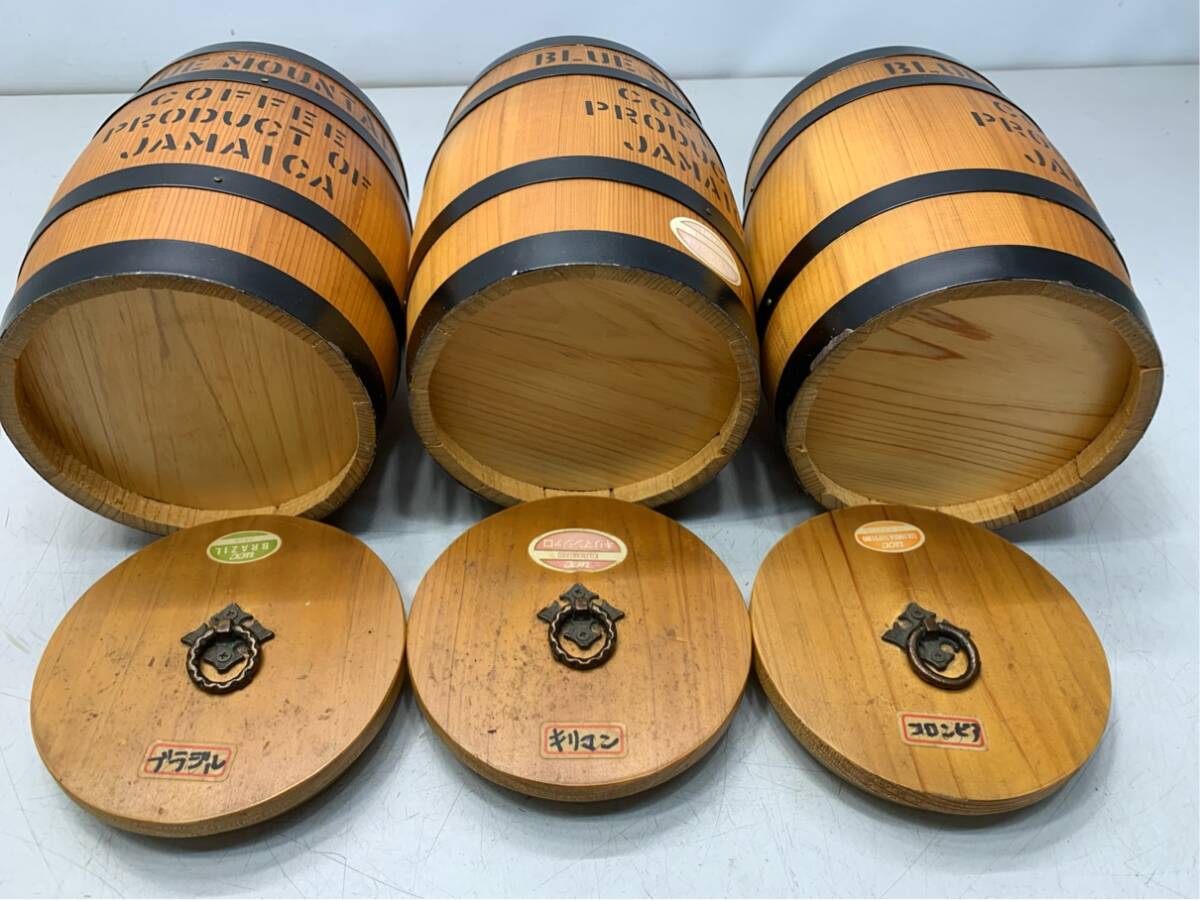 貴重 コーヒーバレル 3点セット 樽 木製 ブルーマウンテン ヴィンテージ雑貨 アンティークインテリア レトロ A9844B10