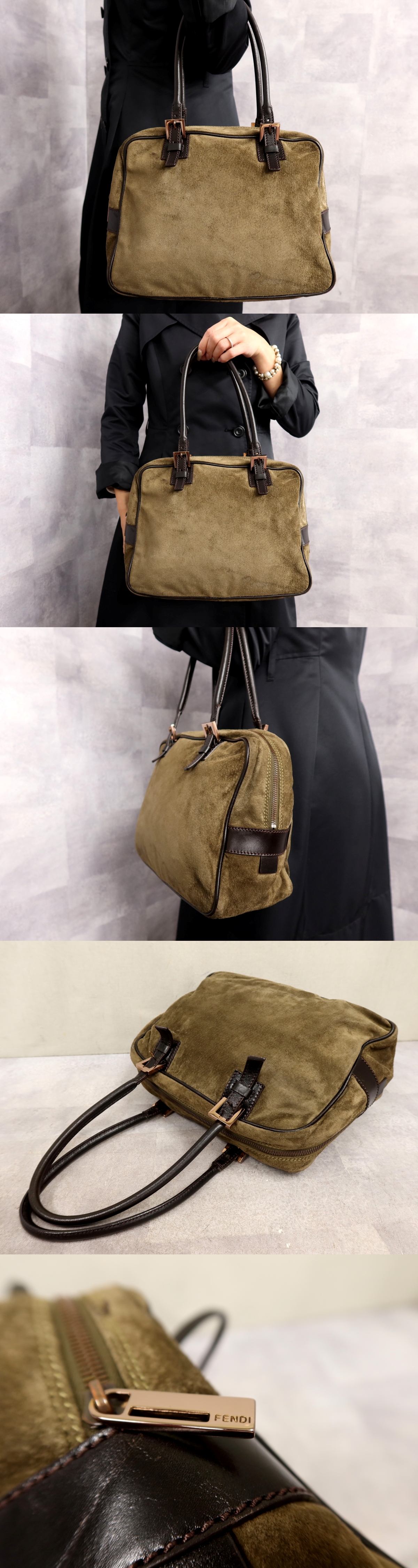 ●超美品●FENDI フェンディ●スエード カーフ レザー 本革●ハンド バッグ●カーキ ブラウン●ゴールド金具●腕掛け●B5 かばん●Js63816