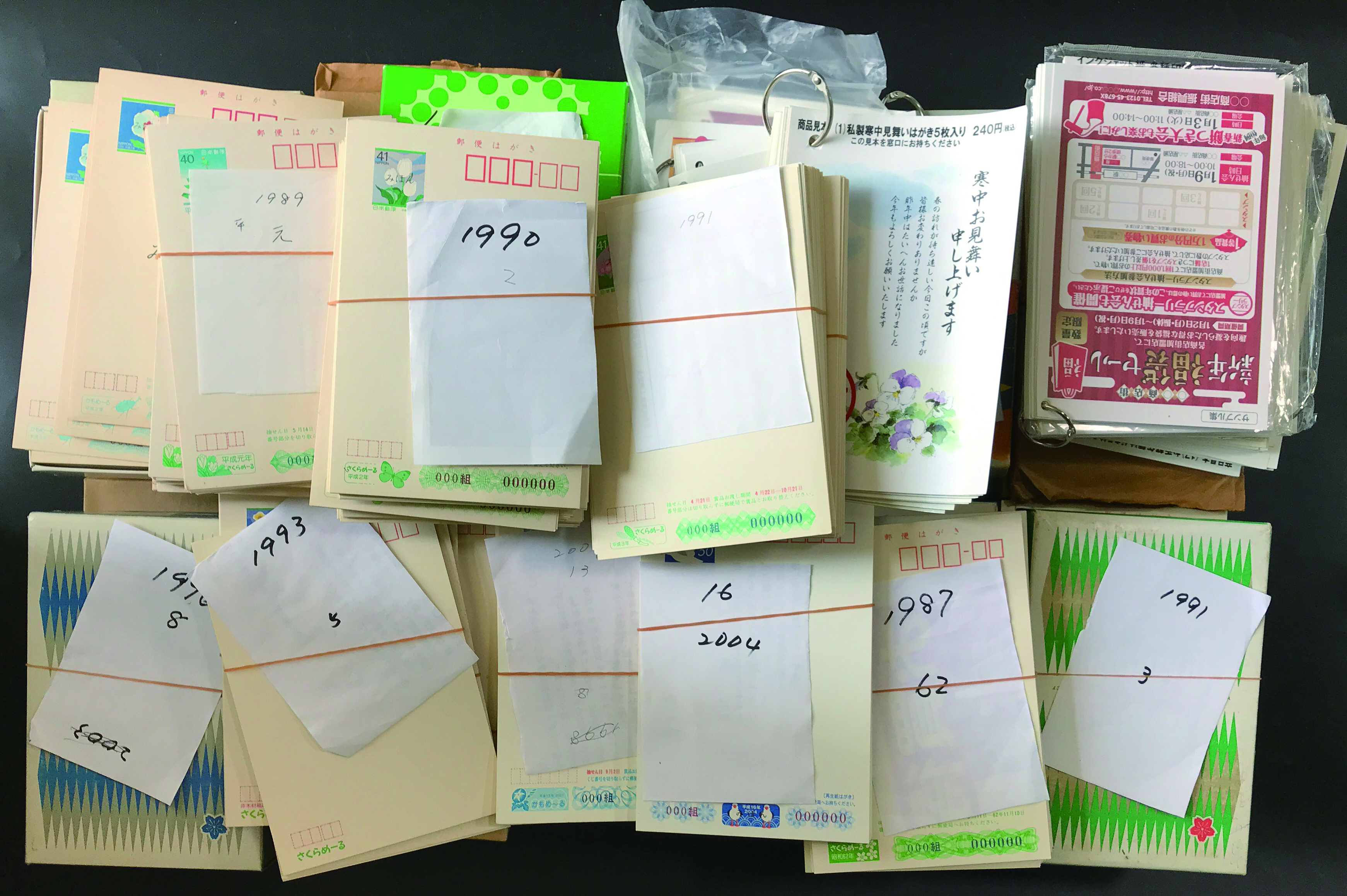商品説明:[41966]90サイズ段ボールに満杯の、大量の暑中見舞葉書(一部、年賀葉書) 分量膨大