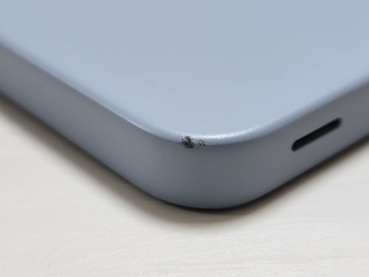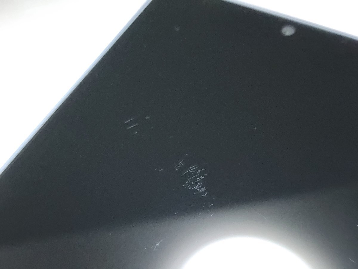 【外装状態】: C 液晶パネルが浮いていて、バッテリー膨張の可能性があります。画面には傷がやや多いです。側面はところどころに打痕があります。背面にはカバー痕がやや目立ちます。アウトカメラのレンズカバーにも傷がありますが、カメラは正常です。機能面は、薄い画面焼けがあります。