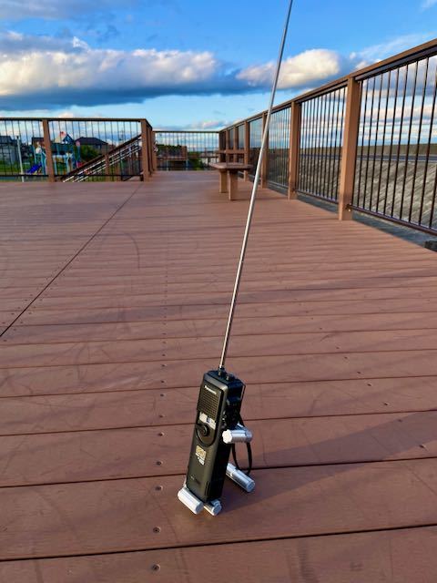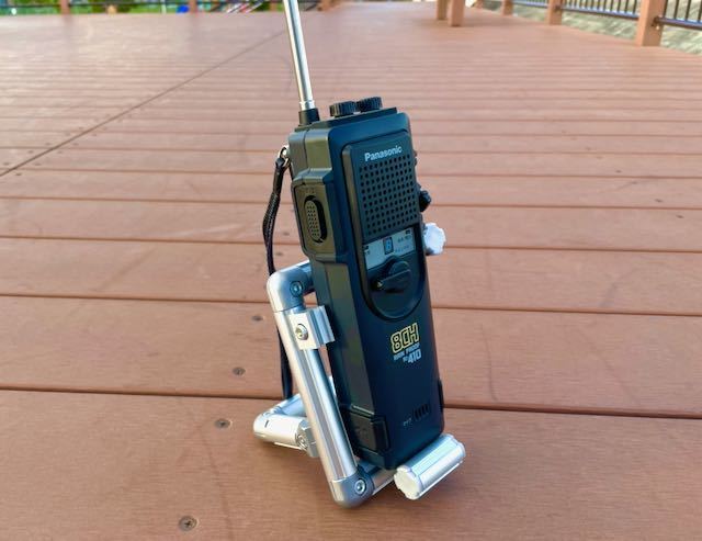 ホルダーに置くだけの状態になりますので、入感があれば、さっと手持ち運用できますが風による転倒、落下に注意してご使用ください。